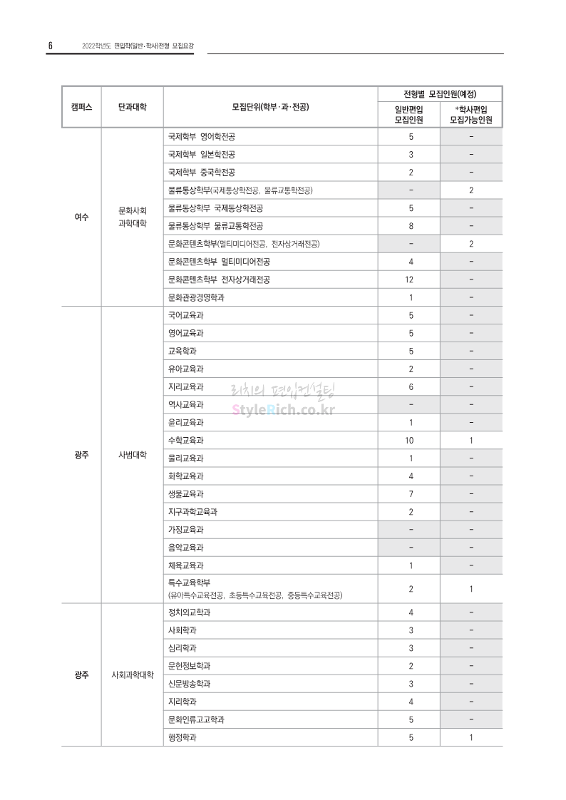 전남대 편입 2022학년도 모집요강 간편하게 보자!