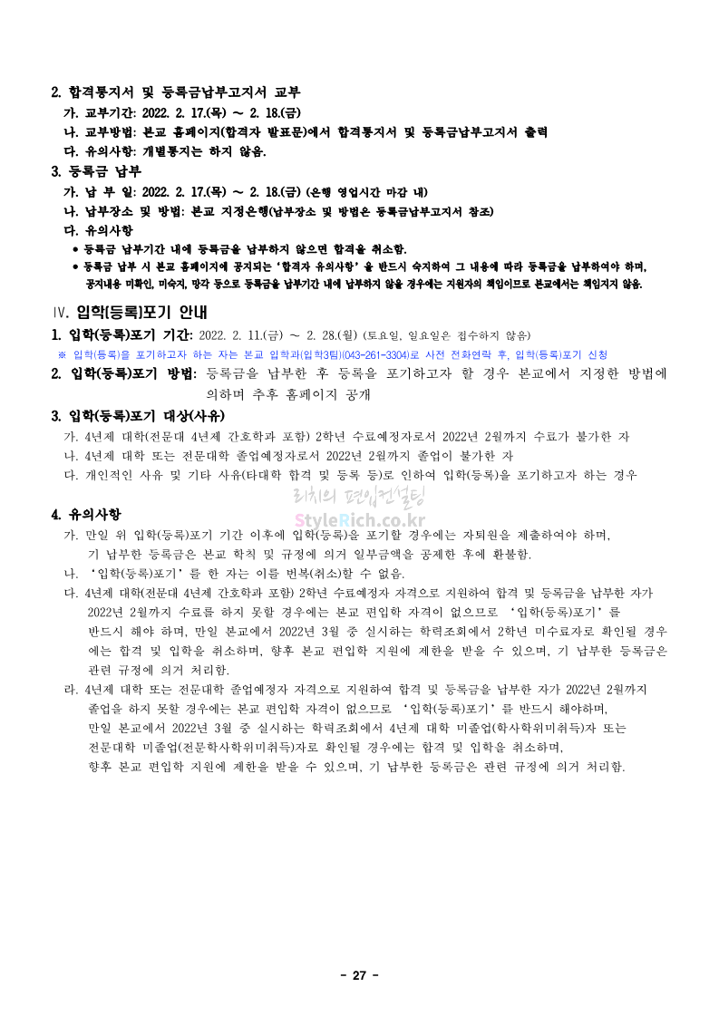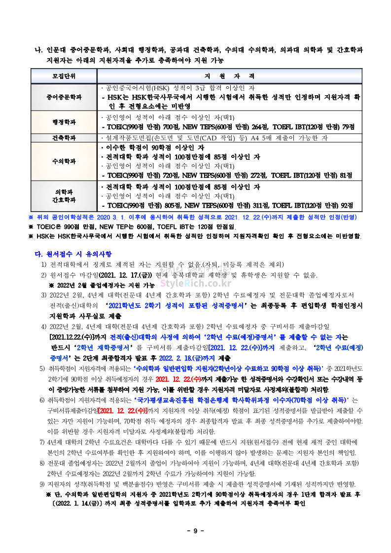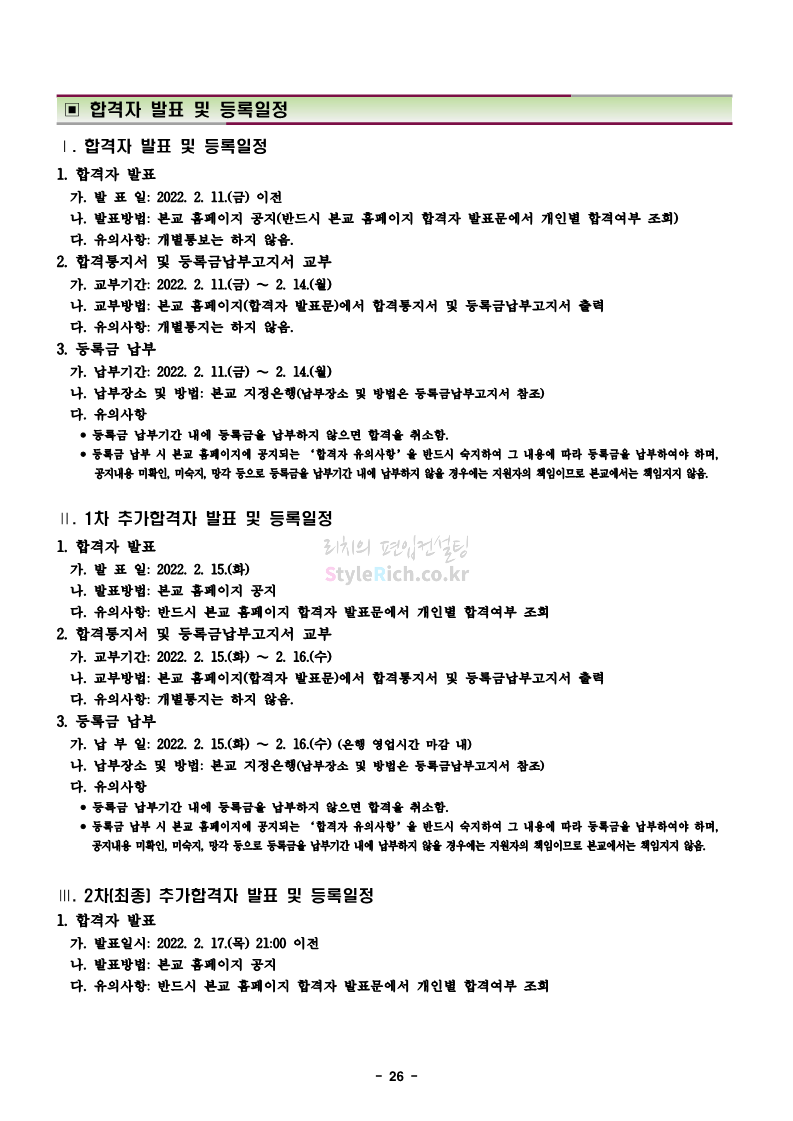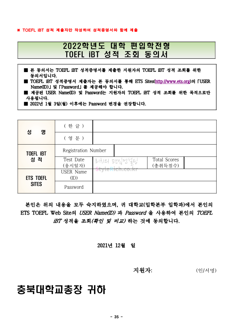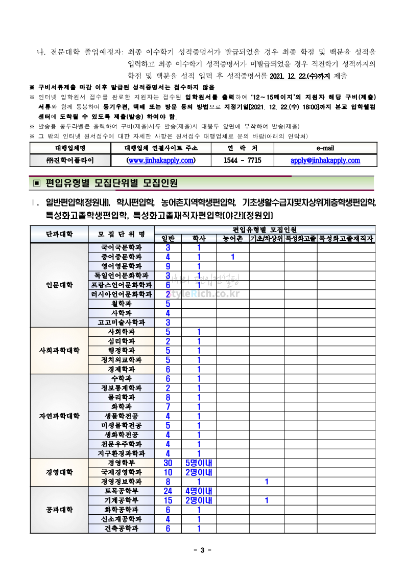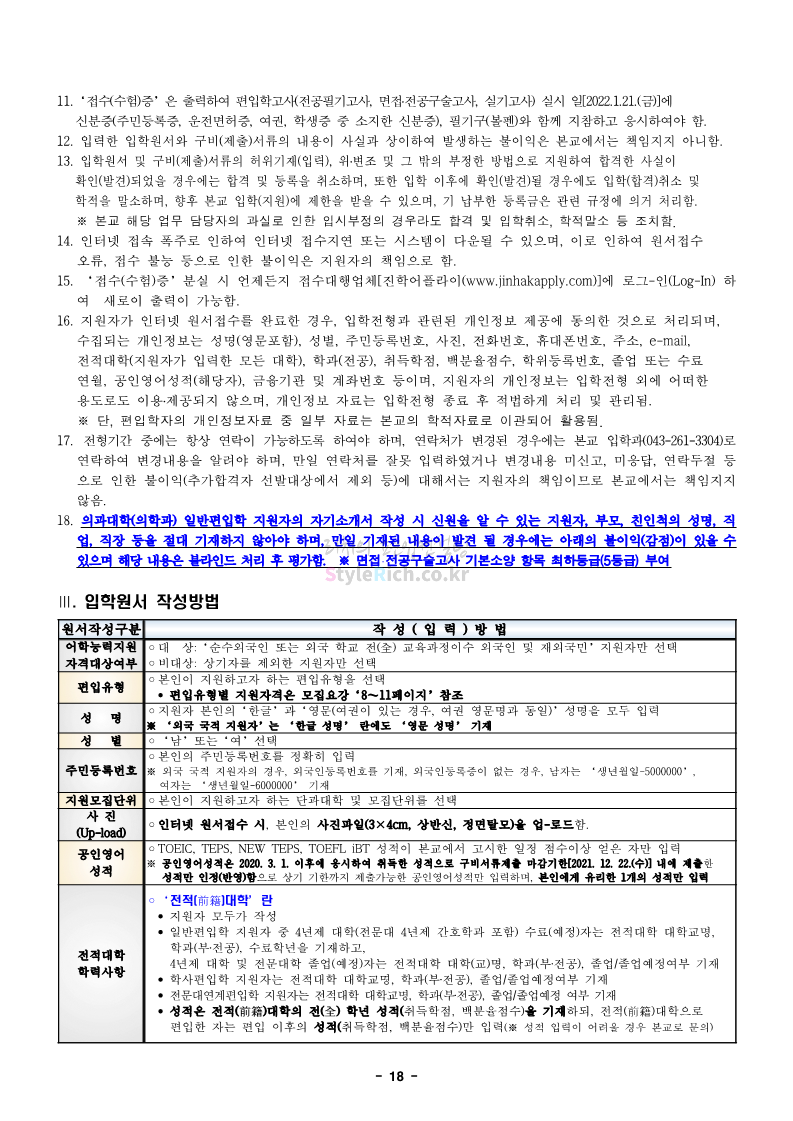 충북대 편입 2022학년도 모집요강 간편하게 보자! 2021.12.08 00:23 편입 모집요강/2022학년도 모집요강 2022학년도 충북대 편입 모집요강(2021.12.07 기준)을 간편하게 확인하세요. * 최종 모집요강 발표 이후에도 내용의 일부가 변경될 수 있으니 지원 전 반드시 충북대 입학처의 모집요강을 확인 바랍니다. 2022학년도 충북대 편입 모집요강 다운받기 <출처: 충북대> [충북대학교] 학교 안에 수영장, 스쿼시장, 헬스장까지 있다고? : CBNU 스포츠센터 체험기🏋🏻 공유하기 게시글 관리 리치의 편입컨설팅 저작자표시 비영리 변경금지 (새창열림) '편입 모집요강 > 2022학년도 모집요강' 카테고리의 다른 글 경북대 편입 2022학년도 모집요강 간편하게 보자! (0) 2021.12.08 서울시립대 편입 2022학년도 모집요강 간편하게 보자! (0) 2021.12.08 전남대 편입 2022학년도 모집요강 간편하게 보자! (0) 2021.12.07 안양대 편입 2022학년도 모집요강 간편하게 보자! (0) 2021.12.07 중앙대 편입 2022학년도 모집요강 간편하게 보자! (0) 2021.12.07 댓글 공유하기 다른 글 댓글 이 글 공유하기 구독하기 구독하기 카카오톡 카카오톡 라인 라인 트위터 트위터 Facebook Facebook 카카오스토리 카카오스토리 밴드 밴드 네이버 블로그 네이버 블로그 Pocket Pocket Evernote Evernote 다른 글 경북대 편입 2022학년도 모집요강 간편하게 보자! 경북대 편입 2022학년도 모집요강 간편하게 보자! 2021.12.08 서울시립대 편입 2022학년도 모집요강 간편하게 보자! 서울시립대 편입 2022학년도 모집요강 간편하게 보자! 2021.12.08 전남대 편입 2022학년도 모집요강 간편하게 보자! 전남대 편입 2022학년도 모집요강 간편하게 보자! 2021.12.07 안양대 편입 2022학년도 모집요강 간편하게 보자! 안양대 편입 2022학년도 모집요강 간편하게 보자! 2021.12.07 다른 글 더 둘러보기