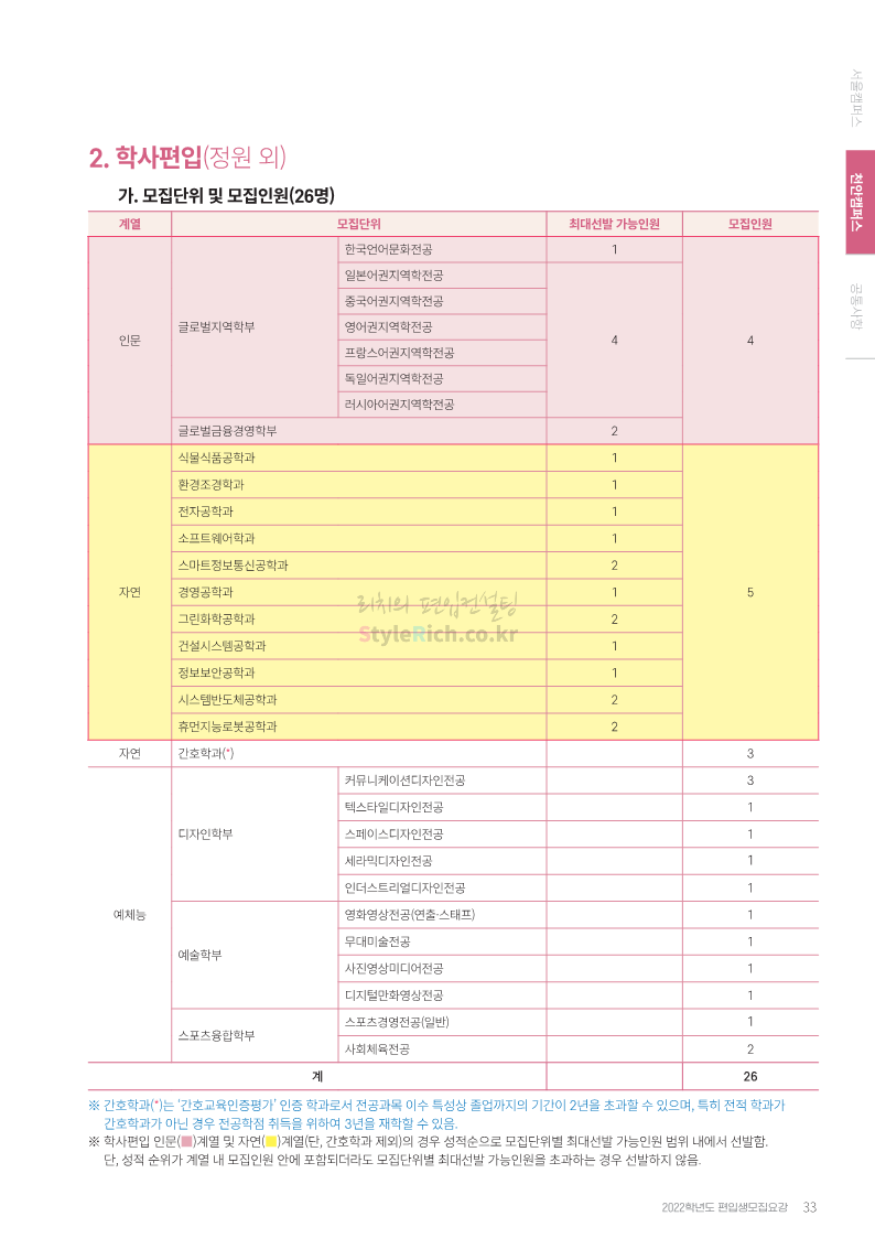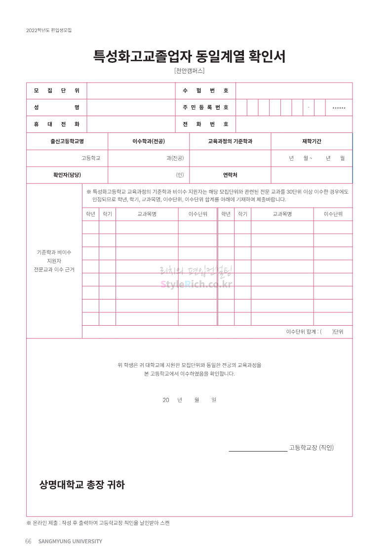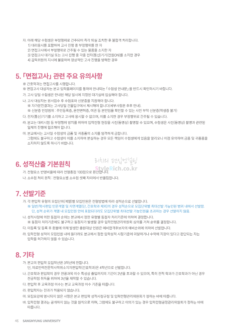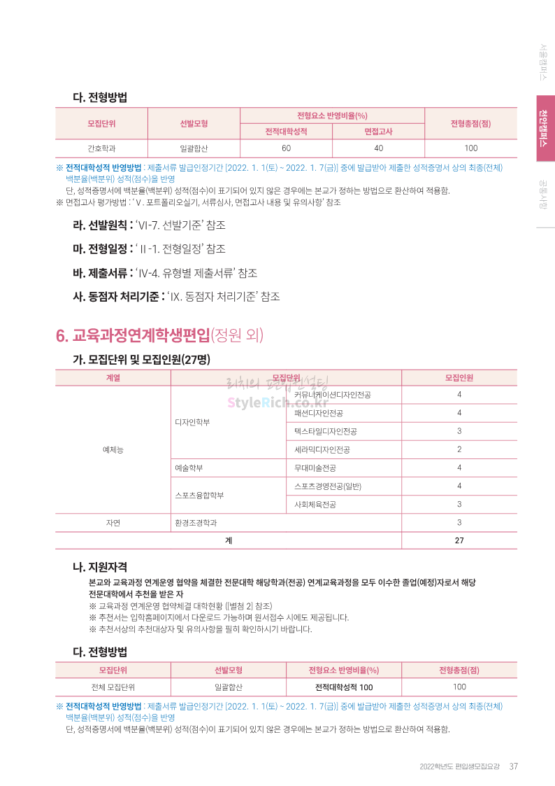 상명대(천안) 편입 2022학년도 모집요강 간편하게 보자! 2021.12.10 20:27 편입 모집요강/2022학년도 모집요강 2022학년도 상명대(천안) 편입 모집요강(2021.12.10 기준)을 간편하게 확인하세요. * 최종 모집요강 발표 이후에도 내용의 일부가 변경될 수 있으니 지원 전 반드시 상명대(천안) 입학처의 모집요강을 확인 바랍니다. 2022학년도 상명대(천안) 편입 모집요강 다운받기 <출처: 상명대> 🎶상명대학교 천안캠퍼스를 소개합니다🎶 공유하기 게시글 관리 리치의 편입컨설팅 저작자표시 비영리 변경금지 (새창열림) '편입 모집요강 > 2022학년도 모집요강' 카테고리의 다른 글 한국외대 편입 2022학년도 모집요강 간편하게 보자! (0) 2021.12.10 서울여대 편입 2022학년도 모집요강 간편하게 보자! (0) 2021.12.10 상명대 편입 2022학년도 모집요강 간편하게 보자! (0) 2021.12.10 성균관대 편입 2022학년도 모집요강 간편하게 보자! (0) 2021.12.09 경북대 편입 2022학년도 모집요강 간편하게 보자! (0) 2021.12.08 댓글 공유하기 다른 글 댓글 이 글 공유하기 구독하기 구독하기 카카오톡 카카오톡 라인 라인 트위터 트위터 Facebook Facebook 카카오스토리 카카오스토리 밴드 밴드 네이버 블로그 네이버 블로그 Pocket Pocket Evernote Evernote 다른 글 한국외대 편입 2022학년도 모집요강 간편하게 보자! 한국외대 편입 2022학년도 모집요강 간편하게 보자! 2021.12.10 서울여대 편입 2022학년도 모집요강 간편하게 보자! 서울여대 편입 2022학년도 모집요강 간편하게 보자! 2021.12.10 상명대 편입 2022학년도 모집요강 간편하게 보자! 상명대 편입 2022학년도 모집요강 간편하게 보자! 2021.12.10 성균관대 편입 2022학년도 모집요강 간편하게 보자! 성균관대 편입 2022학년도 모집요강 간편하게 보자! 2021.12.09 다른 글 더 둘러보기
