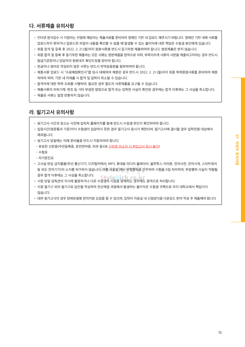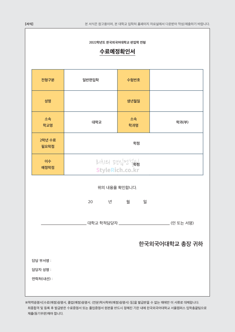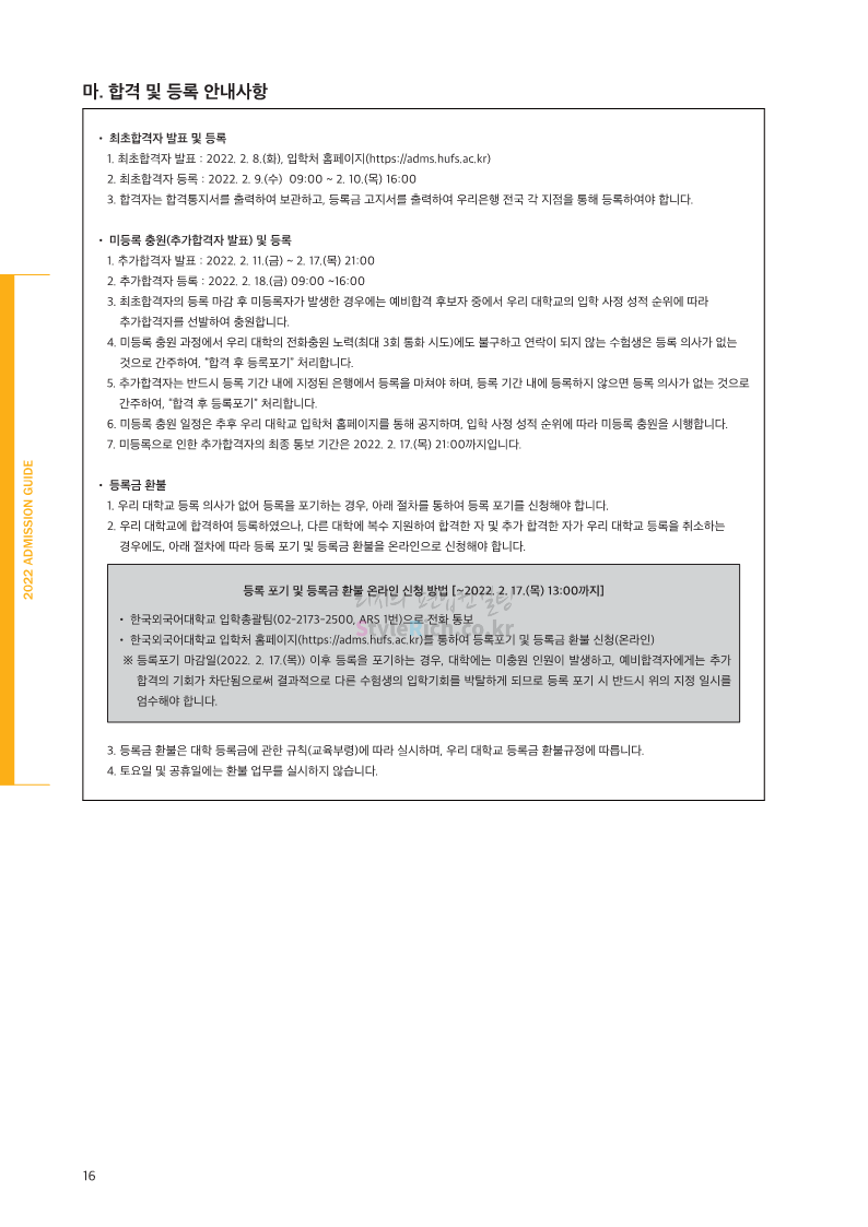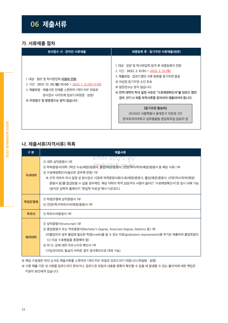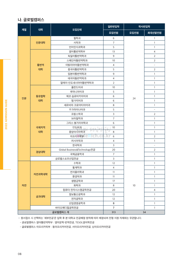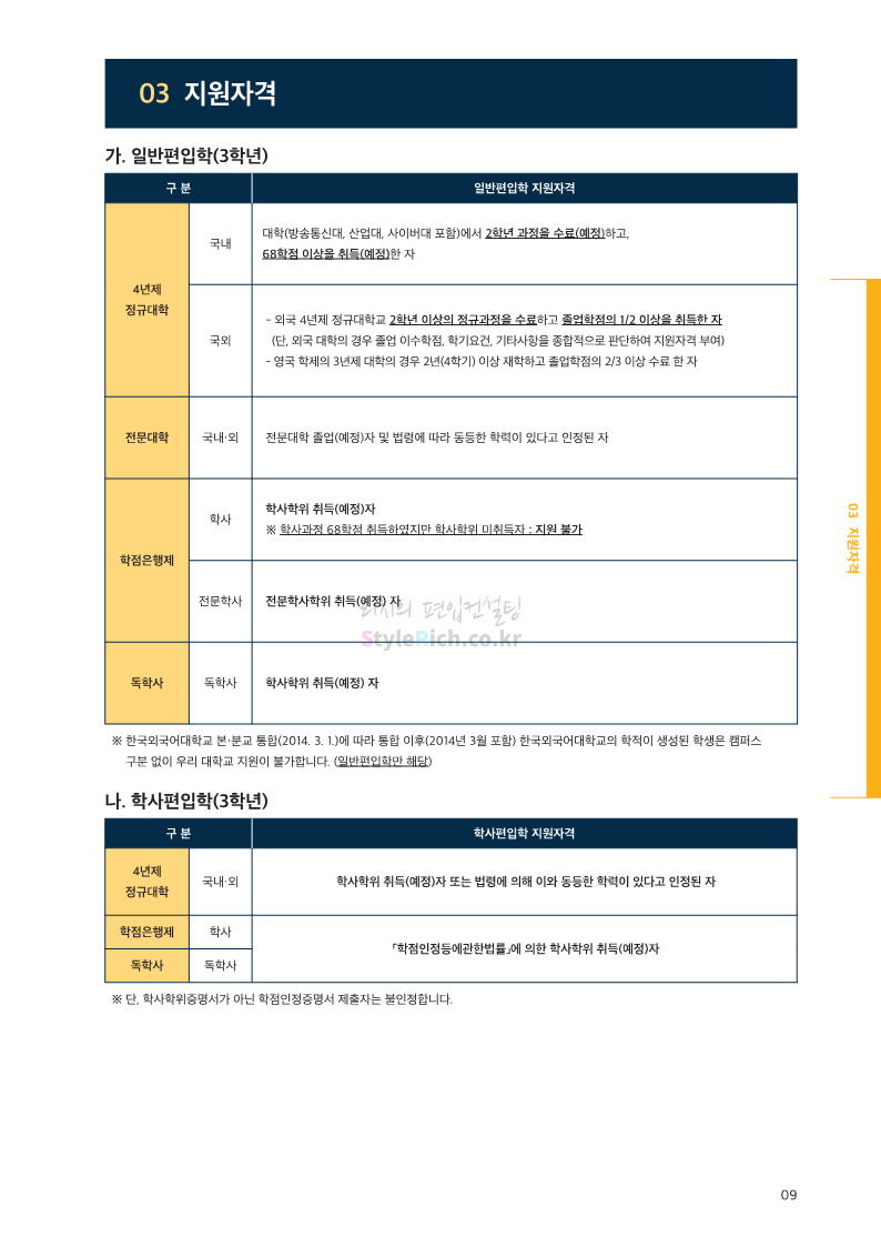 한국외대 편입 2022학년도 모집요강 간편하게 보자! 2021.12.10 21:48 편입 모집요강/2022학년도 모집요강 2022학년도 한국외대 편입 모집요강(2021.12.10 기준)을 간편하게 확인하세요. * 최종 모집요강 발표 이후에도 내용의 일부가 변경될 수 잇으니 지원 전 반드시 한국외대 입학처의 모집요강을 확인 바랍니다. 2022학년도 한국외대 편입 모집요강 다운받기 <출처: 한국외대> [VLOG] 한국외대 대면수업 브이로그🏛 공유하기 게시글 관리 리치의 편입컨설팅 저작자표시 비영리 변경금지 (새창열림) '편입 모집요강 > 2022학년도 모집요강' 카테고리의 다른 글 강원대 편입 2022학년도 모집요강 간편하게 보자! (0) 2021.12.11 한양대 편입 2022학년도 모집요강 간편하게 보자! (0) 2021.12.10 서울여대 편입 2022학년도 모집요강 간편하게 보자! (0) 2021.12.10 상명대(천안) 편입 2022학년도 모집요강 간편하게 보자! (0) 2021.12.10 상명대 편입 2022학년도 모집요강 간편하게 보자! (0) 2021.12.10 댓글 공유하기 다른 글 댓글 이 글 공유하기 구독하기 구독하기 카카오톡 카카오톡 라인 라인 트위터 트위터 Facebook Facebook 카카오스토리 카카오스토리 밴드 밴드 네이버 블로그 네이버 블로그 Pocket Pocket Evernote Evernote 다른 글 강원대 편입 2022학년도 모집요강 간편하게 보자! 강원대 편입 2022학년도 모집요강 간편하게 보자! 2021.12.11 한양대 편입 2022학년도 모집요강 간편하게 보자! 한양대 편입 2022학년도 모집요강 간편하게 보자! 2021.12.10 서울여대 편입 2022학년도 모집요강 간편하게 보자! 서울여대 편입 2022학년도 모집요강 간편하게 보자! 2021.12.10 상명대(천안) 편입 2022학년도 모집요강 간편하게 보자! 상명대(천안) 편입 2022학년도 모집요강 간편하게 보자! 2021.12.10 다른 글 더 둘러보기