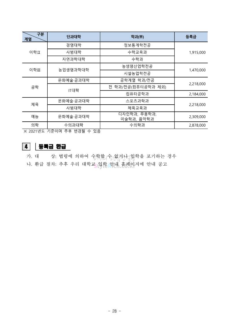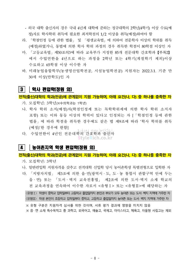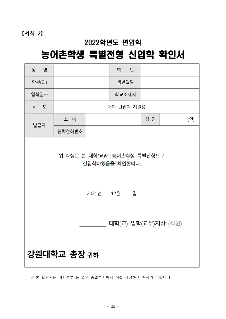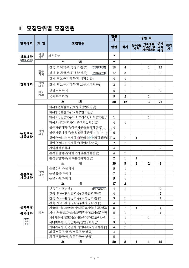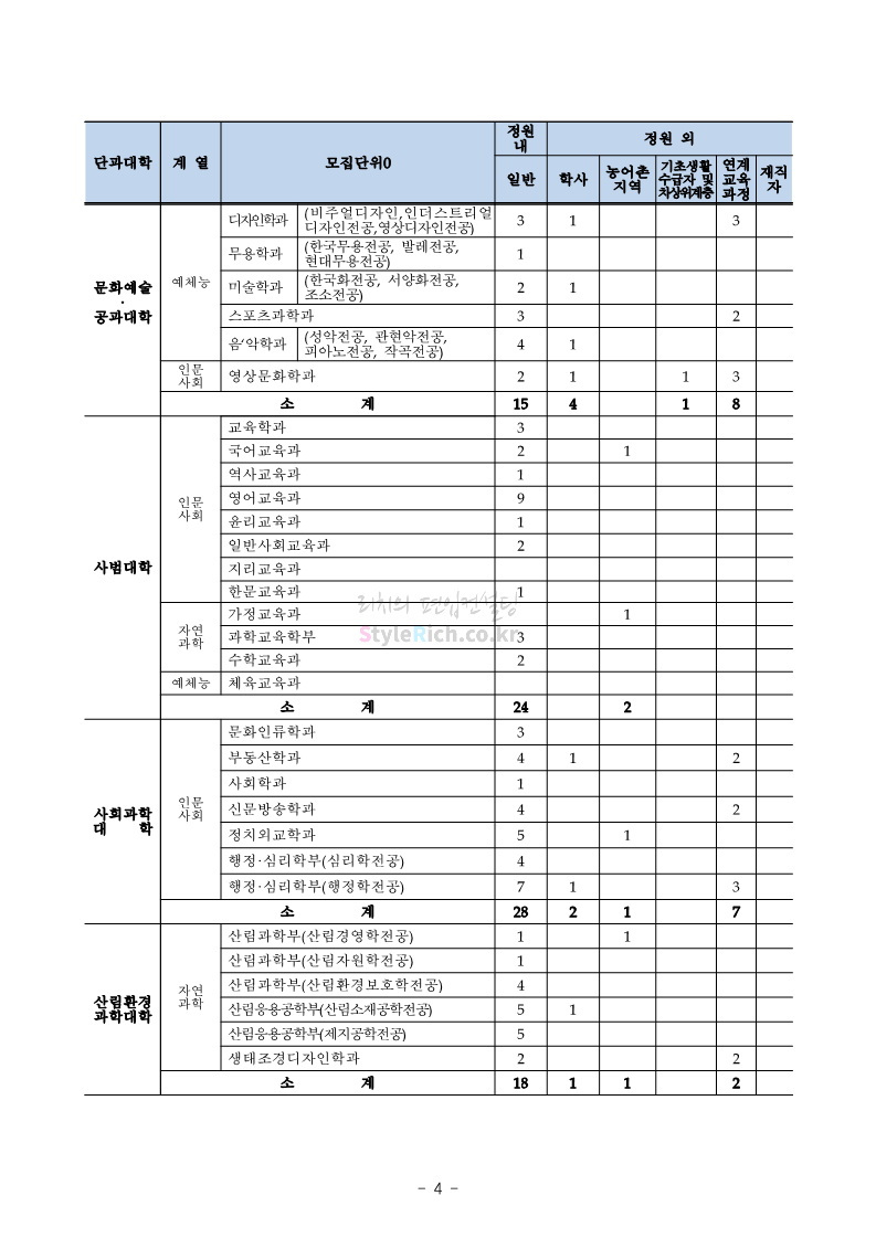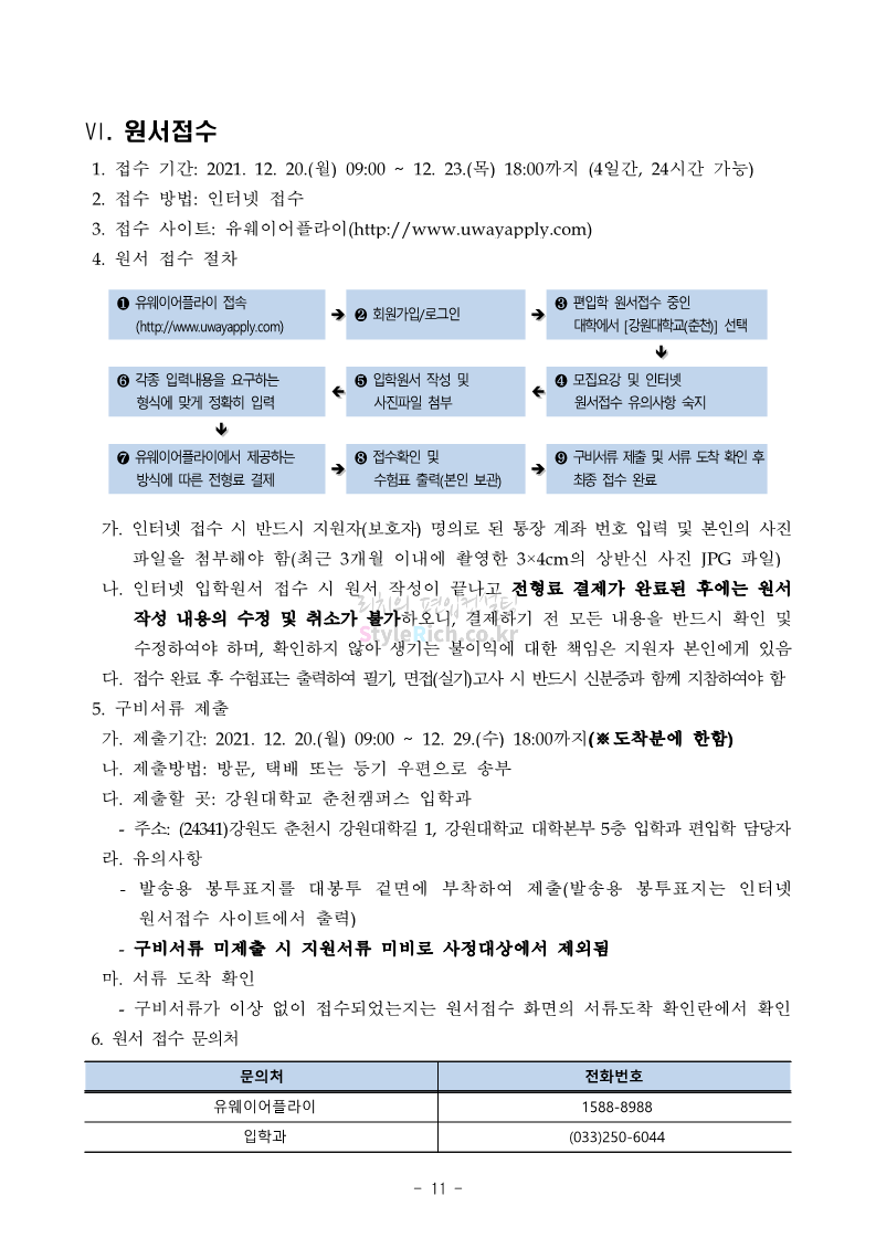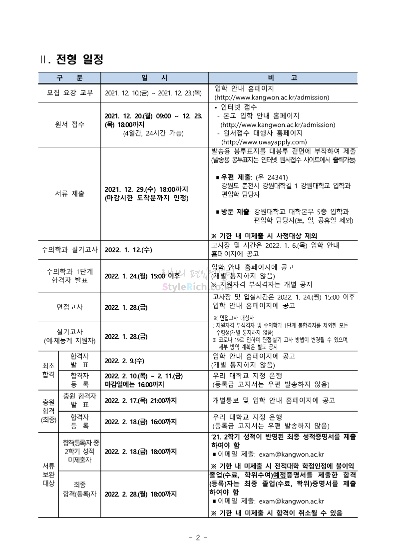 강원대 편입 2022학년도 모집요강 간편하게 보자! 2021.12.11 00:41 편입 모집요강/2022학년도 모집요강 2022학년도 강원대 편입 모집요강(2021.12.10 기준)을 간편하게 확인하세요. * 최종 모집요강 발표 이후에도 내용의 일부가 변경될 수 있으니 지원 전 반드시 강원대 입학처의 모집요강을 확인 바랍니다. 2022학년도 강원대 편입 모집요강 다운받기 <출처: 강원대> 강원대학교의 내일을 ON : 가온| • 🔶가온이 리뷰해두리 곰두리 굿즈 편🔶 공유하기 게시글 관리 리치의 편입컨설팅 저작자표시 비영리 변경금지 (새창열림) '편입 모집요강 > 2022학년도 모집요강' 카테고리의 다른 글 서강대 편입 2022학년도 모집요강 간편하게 보자! (0) 2021.12.11 강원대(삼척) 편입 2022학년도 모집요강 간편하게 보자! (0) 2021.12.11 한양대 편입 2022학년도 모집요강 간편하게 보자! (0) 2021.12.10 한국외대 편입 2022학년도 모집요강 간편하게 보자! (0) 2021.12.10 서울여대 편입 2022학년도 모집요강 간편하게 보자! (0) 2021.12.10 댓글 공유하기 다른 글 댓글 이 글 공유하기 구독하기 구독하기 카카오톡 카카오톡 라인 라인 트위터 트위터 Facebook Facebook 카카오스토리 카카오스토리 밴드 밴드 네이버 블로그 네이버 블로그 Pocket Pocket Evernote Evernote 다른 글 서강대 편입 2022학년도 모집요강 간편하게 보자! 서강대 편입 2022학년도 모집요강 간편하게 보자! 2021.12.11 강원대(삼척) 편입 2022학년도 모집요강 간편하게 보자! 강원대(삼척) 편입 2022학년도 모집요강 간편하게 보자! 2021.12.11 한양대 편입 2022학년도 모집요강 간편하게 보자! 한양대 편입 2022학년도 모집요강 간편하게 보자! 2021.12.10 한국외대 편입 2022학년도 모집요강 간편하게 보자! 한국외대 편입 2022학년도 모집요강 간편하게 보자! 2021.12.10 다른 글 더 둘러보기