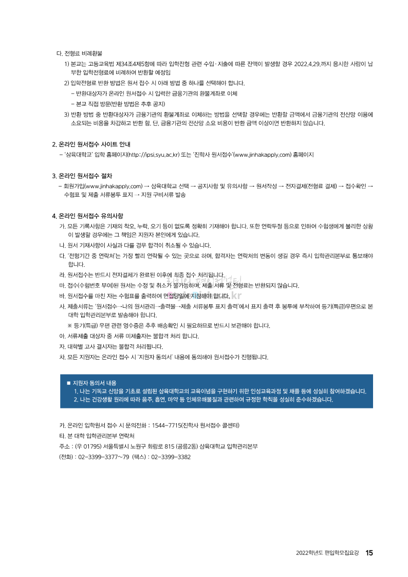 삼육대 편입 2022학년도 모집요강 간편하게 보자! 2021.12.15 22:04 편입 모집요강/2022학년도 모집요강 2022학년도 삼육대 편입 모집요강(2021.12.15 기준)을 간편하게 확인하세요. * 최종 모집요강 발표 이후에도 내용의 일부가 변경될 수 있으니 지원 전 반드시 삼육대 입학처의 모집요강을 확인 바랍니다. 2022학년도 삼육대 편입 모집요강 다운받기 <출처: 삼육대> 삼육대 후문 #신상맛집 #신상카페 #shorts 공유하기 게시글 관리 리치의 편입컨설팅 저작자표시 비영리 변경금지 (새창열림) '편입 모집요강 > 2022학년도 모집요강' 카테고리의 다른 글 전북대 편입 2022학년도 모집요강 간편하게 보자! (0) 2021.12.15 한양대(에리카)편입 2022학년도 모집요강 간편하게 보자! (0) 2021.12.15 고려대(세종) 편입 2022학년도 모집요강 간편하게 보자! (0) 2021.12.15 제주대 편입 2022학년도 모집요강 간편하게 보자! (0) 2021.12.14 동국대 편입 2022학년도 모집요강 간편하게 보자! (0) 2021.12.13 댓글 공유하기 다른 글 댓글 이 글 공유하기 구독하기 구독하기 카카오톡 카카오톡 라인 라인 트위터 트위터 Facebook Facebook 카카오스토리 카카오스토리 밴드 밴드 네이버 블로그 네이버 블로그 Pocket Pocket Evernote Evernote 다른 글 전북대 편입 2022학년도 모집요강 간편하게 보자! 전북대 편입 2022학년도 모집요강 간편하게 보자! 2021.12.15 한양대(에리카)편입 2022학년도 모집요강 간편하게 보자! 한양대(에리카)편입 2022학년도 모집요강 간편하게 보자! 2021.12.15 고려대(세종) 편입 2022학년도 모집요강 간편하게 보자! 고려대(세종) 편입 2022학년도 모집요강 간편하게 보자! 2021.12.15 제주대 편입 2022학년도 모집요강 간편하게 보자! 제주대 편입 2022학년도 모집요강 간편하게 보자! 2021.12.14 다른 글 더 둘러보기