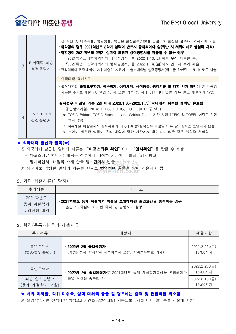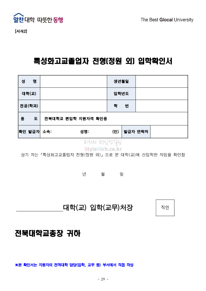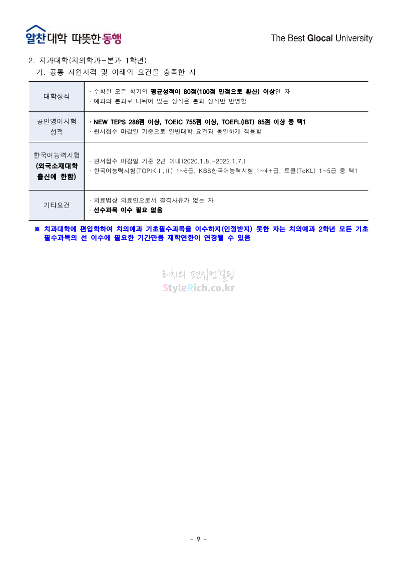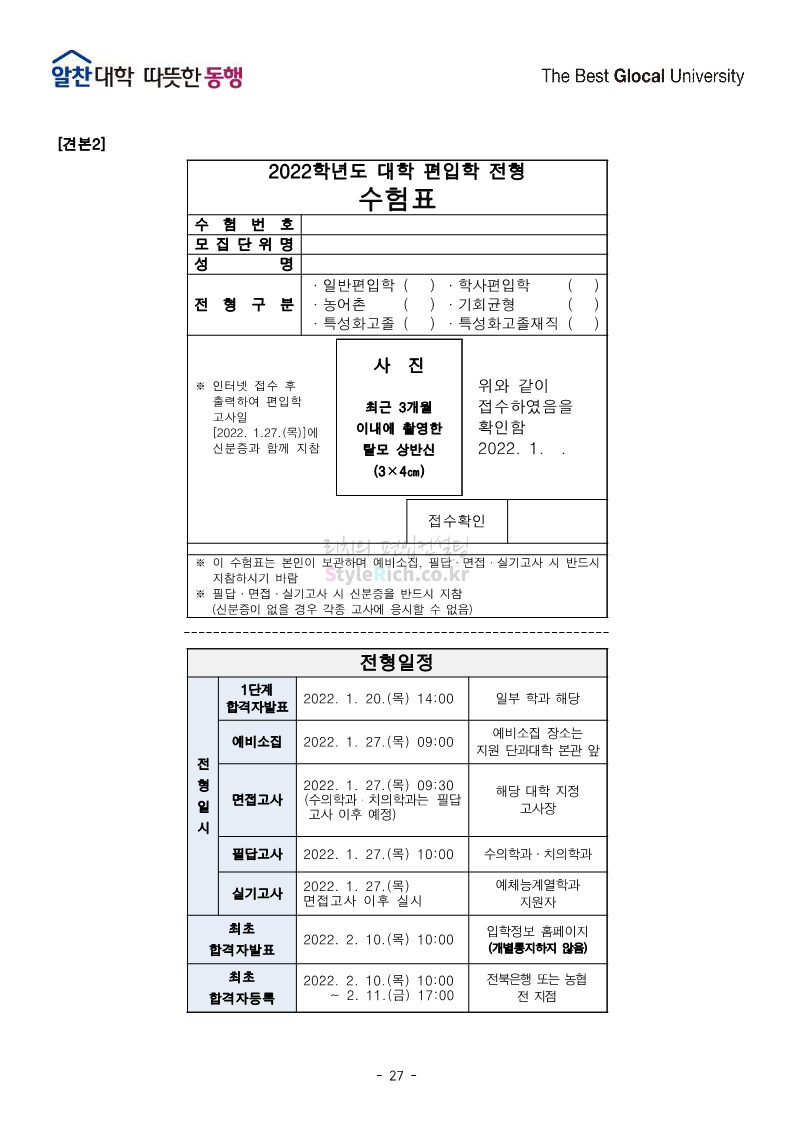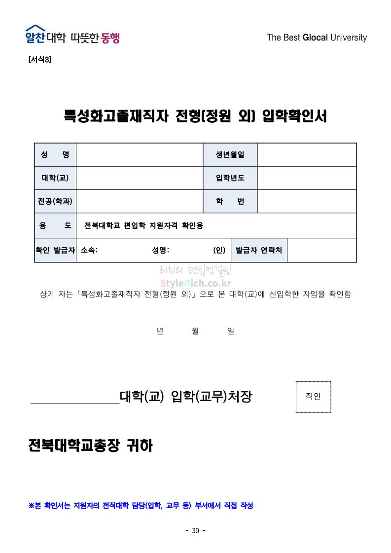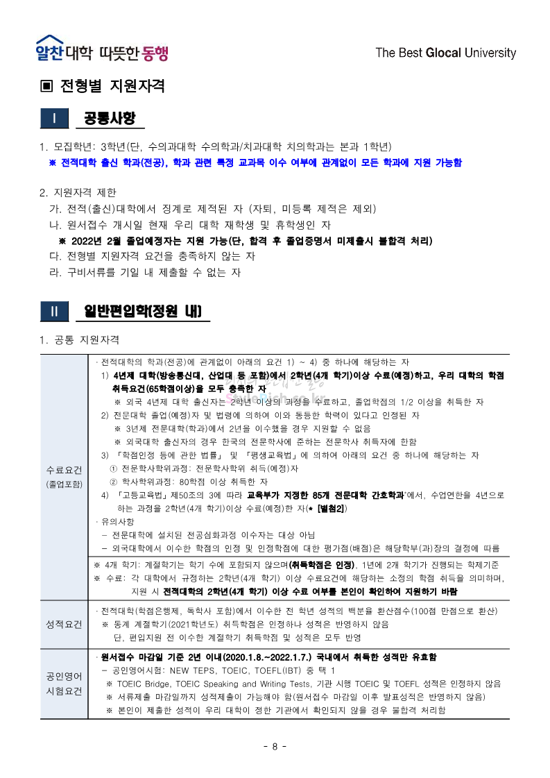 전북대 편입 2022학년도 모집요강 간편하게 보자! 2021.12.15 23:41 편입 모집요강/2022학년도 모집요강 2022학년도 전북대 편입 모집요강(2021.12.15 기준)을 간편하게 확인하세요. * 최종 모집요강 발표 이후에도 내용의 일부가 변경될 수 있으니 지원 전 반드시 전북대 입학처의 모집요강을 확인 바랍니다. 2022학년도 전북대 편입 모집요강 다운받기 <출처: 전북대> 전북대학교 홍보영상(캠퍼스) 공유하기 게시글 관리 리치의 편입컨설팅 저작자표시 비영리 변경금지 (새창열림) '편입 모집요강 > 2022학년도 모집요강' 카테고리의 다른 글 인천대 편입 2022학년도 모집요강 간편하게 보자! (0) 2021.12.17 성신여대 편입 2022학년도 모집요강 간편하게 보자! (0) 2021.12.16 한양대(에리카)편입 2022학년도 모집요강 간편하게 보자! (0) 2021.12.15 삼육대 편입 2022학년도 모집요강 간편하게 보자! (0) 2021.12.15 고려대(세종) 편입 2022학년도 모집요강 간편하게 보자! (0) 2021.12.15 댓글 공유하기 다른 글 댓글 이 글 공유하기 구독하기 구독하기 카카오톡 카카오톡 라인 라인 트위터 트위터 Facebook Facebook 카카오스토리 카카오스토리 밴드 밴드 네이버 블로그 네이버 블로그 Pocket Pocket Evernote Evernote 다른 글 인천대 편입 2022학년도 모집요강 간편하게 보자! 인천대 편입 2022학년도 모집요강 간편하게 보자! 2021.12.17 성신여대 편입 2022학년도 모집요강 간편하게 보자! 성신여대 편입 2022학년도 모집요강 간편하게 보자! 2021.12.16 한양대(에리카)편입 2022학년도 모집요강 간편하게 보자! 한양대(에리카)편입 2022학년도 모집요강 간편하게 보자! 2021.12.15 삼육대 편입 2022학년도 모집요강 간편하게 보자! 삼육대 편입 2022학년도 모집요강 간편하게 보자! 2021.12.15 다른 글 더 둘러보기
