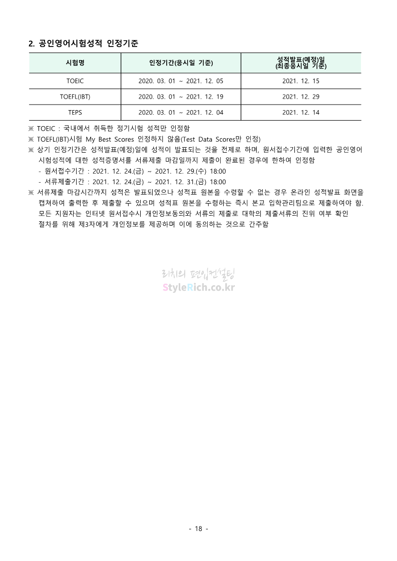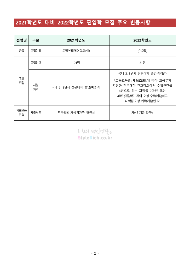 동덕여대 편입 2022학년도 모집요강 간편하게 보자! 2021.12.21 00:09 편입 모집요강/2022학년도 모집요강 2022학년도 동덕여대 편입 모집요강(2021.12.20 기준)을 간편하게 확인하세요. * 최종 모집요강 발표 이후에도 내용의 일부가 변경될 수 있으니 지원 전 반드시 동덕여대 입학처의 모집요강을 확인 바랍니다. 2022학년도 동덕여대 편입 모집요강 다운받기 <출처: 동덕여대> 동덕여자대학교 랜선 시험기간 중 가보았습니다! 공유하기 게시글 관리 리치의 편입컨설팅 저작자표시 비영리 변경금지 (새창열림) '편입 모집요강 > 2022학년도 모집요강' 카테고리의 다른 글 서경대 편입 2022학년도 모집요강 간편하게 보자! (0) 2021.12.26 덕성여대 편입 2022학년도 모집요강 간편하게 보자! (0) 2021.12.22 한성대 편입 2022학년도 모집요강 간편하게 보자! (0) 2021.12.17 인천대 편입 2022학년도 모집요강 간편하게 보자! (0) 2021.12.17 성신여대 편입 2022학년도 모집요강 간편하게 보자! (0) 2021.12.16 댓글 공유하기 다른 글 댓글 이 글 공유하기 구독하기 구독하기 카카오톡 카카오톡 라인 라인 트위터 트위터 Facebook Facebook 카카오스토리 카카오스토리 밴드 밴드 네이버 블로그 네이버 블로그 Pocket Pocket Evernote Evernote 다른 글 서경대 편입 2022학년도 모집요강 간편하게 보자! 서경대 편입 2022학년도 모집요강 간편하게 보자! 2021.12.26 덕성여대 편입 2022학년도 모집요강 간편하게 보자! 덕성여대 편입 2022학년도 모집요강 간편하게 보자! 2021.12.22 한성대 편입 2022학년도 모집요강 간편하게 보자! 한성대 편입 2022학년도 모집요강 간편하게 보자! 2021.12.17 인천대 편입 2022학년도 모집요강 간편하게 보자! 인천대 편입 2022학년도 모집요강 간편하게 보자! 2021.12.17 다른 글 더 둘러보기
