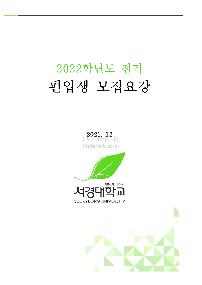 2022학년도 서경대 편입 모집요강 다운받기
