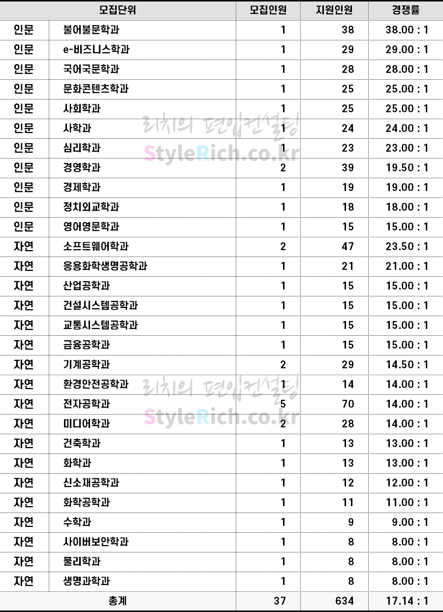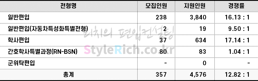 2022학년도 아주대 편입 전형별 경쟁률