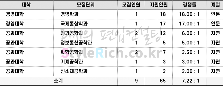 2022학년도 인하대 편입 전형별 경쟁률 현황