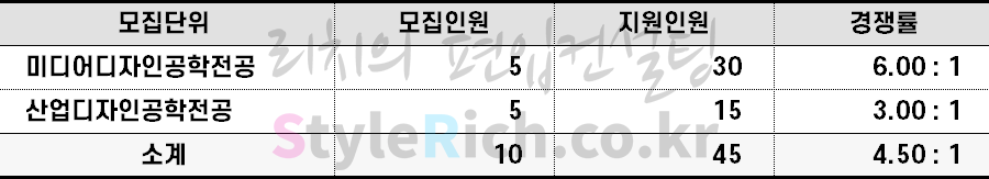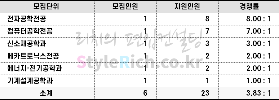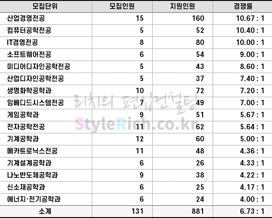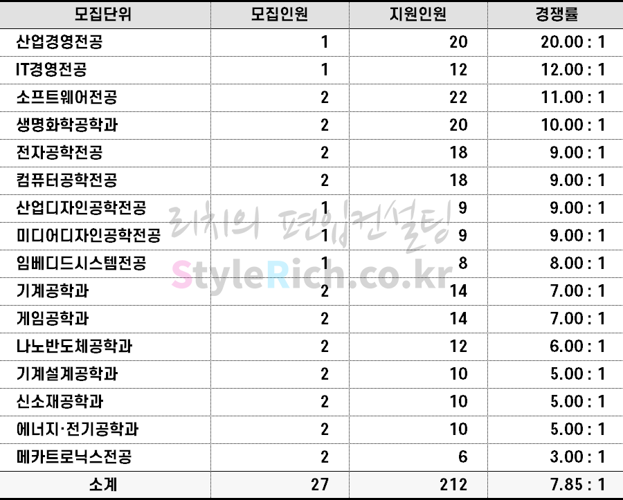 경쟁률 TOP3 학과: 산업경영전공, IT경영전공, 소프트웨어전공