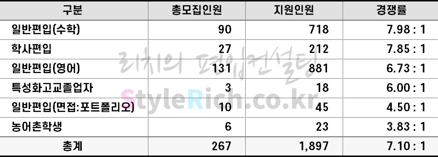 2022학년도 한국공학대(구 한국산업기술대) 편입 전형별 경쟁률