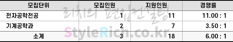 경쟁률 TOP3 학과: 산업경영전공, 컴퓨터공학전공, IT경영전공