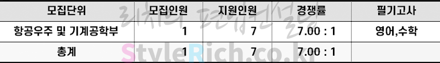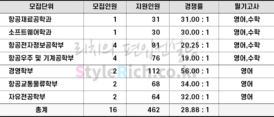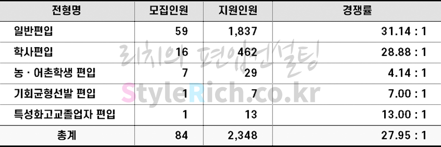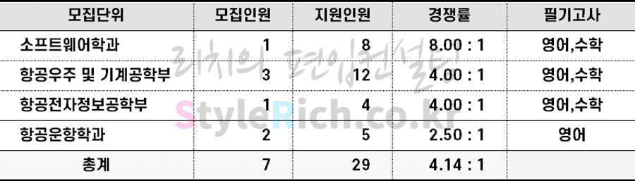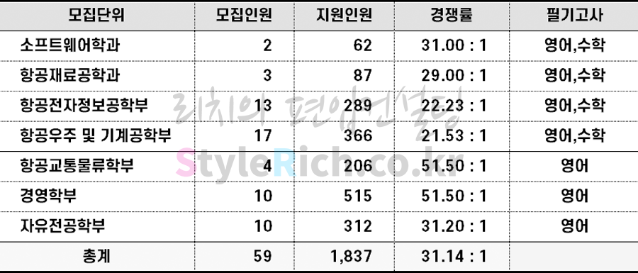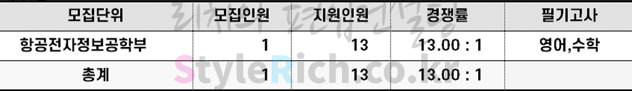 2022학년도 한국항공대 편입 전형별 경쟁률