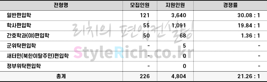 2022학년도 한양대(서울) 간호학과(야)편입 경쟁률