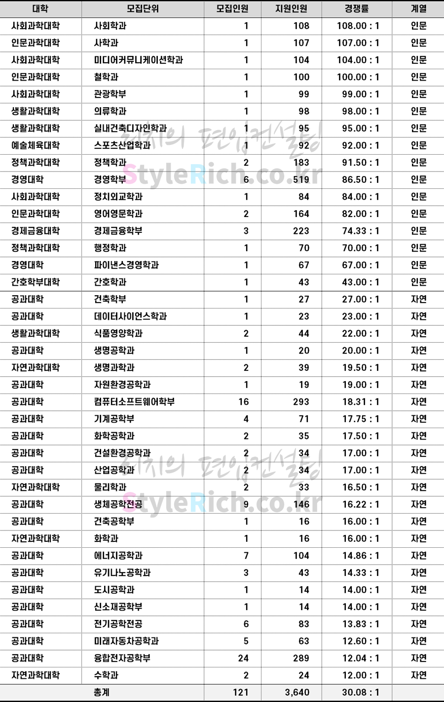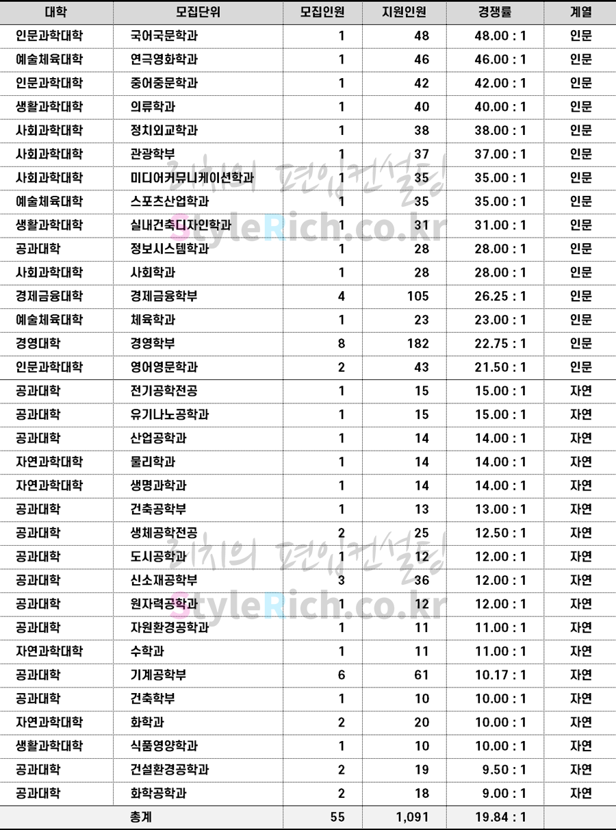 * 군위탁, 새터민, 정부위탁편입은 모집방식이 달라 경쟁률의 개념이 없어 제외