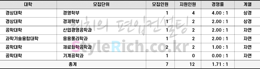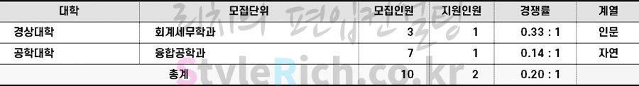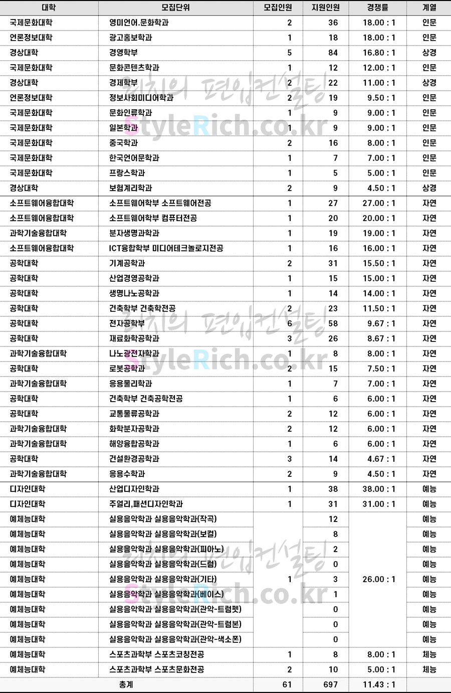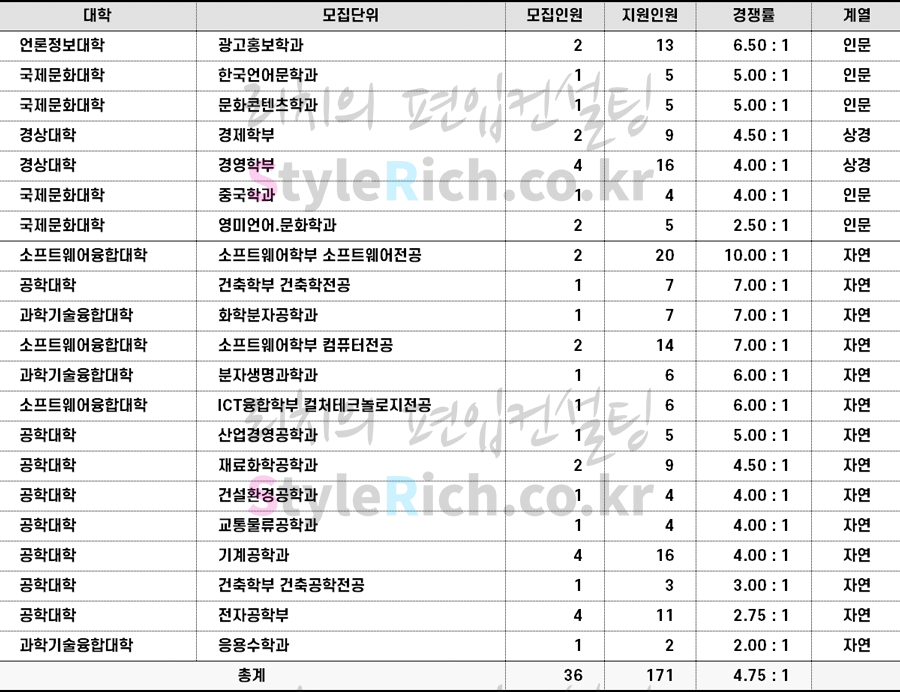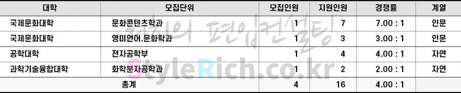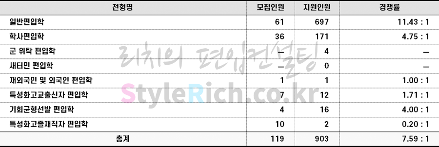 * 군위탁편입, 새터민편입은 모집방식이 달라 경쟁률의 개념이 없어 제외