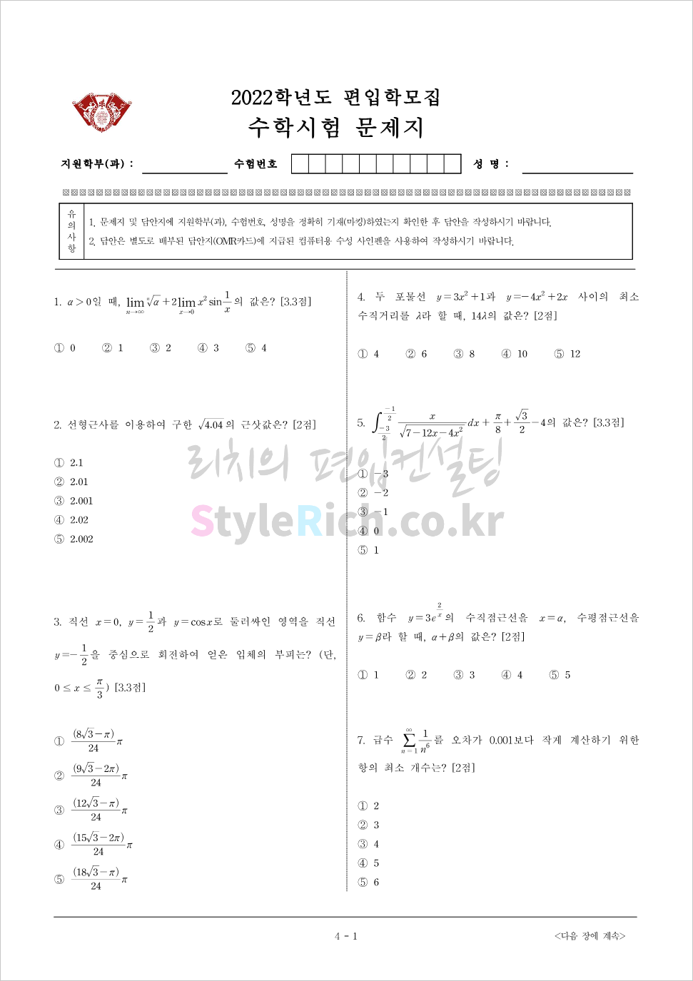 2022학년도 편입학 필답고사 문제지_수학.pdf
