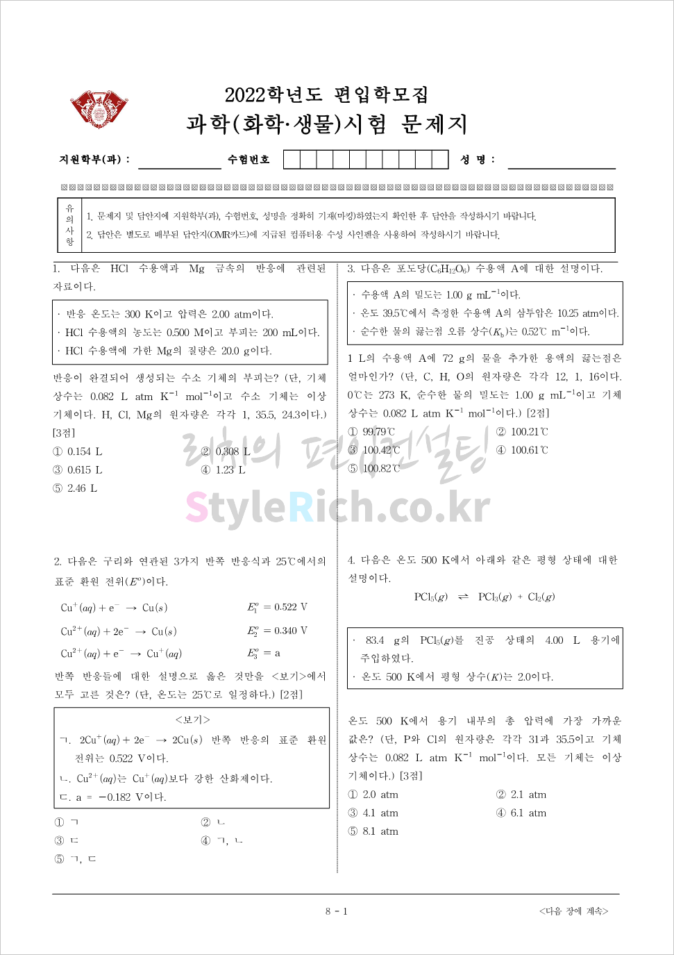 2022학년도 편입학 필답고사 문제지_과학(화학생물).pdf