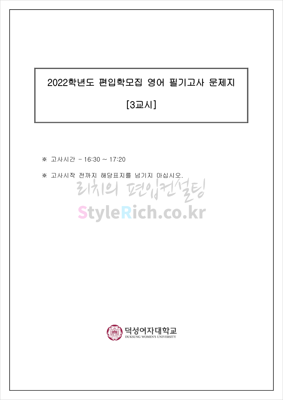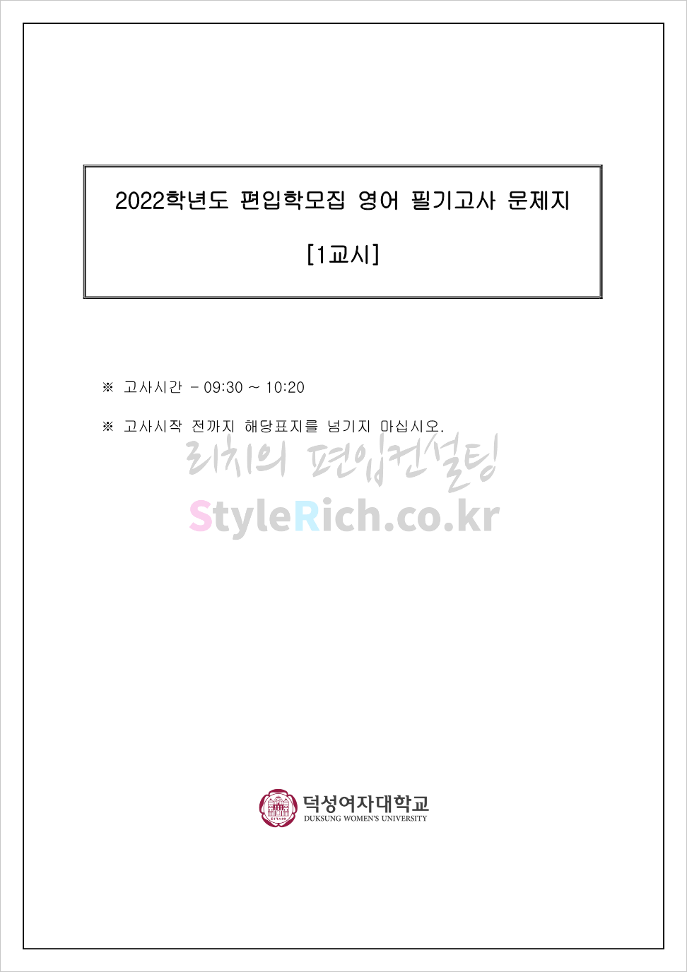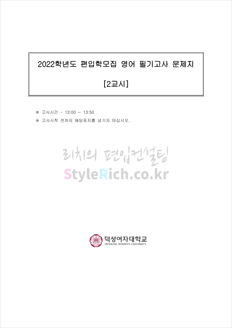 2022학년도 덕성여대 편입 기출문제 다운받기