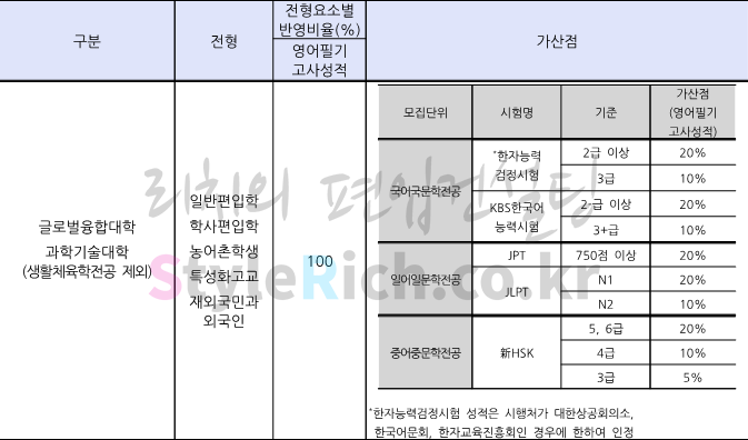 2022학년도 덕성여대 편입 일반편입, 학사편입, 농어촌학생편입, 특성화고교편입, 재외국민과외국인편입의 글로벌융합대학, 과학기술대학(생활체육학전공 제외) 전형방법은 영어 100%, 자격증에 따른 가산점(가산점은 학과마다 다름)입니다.