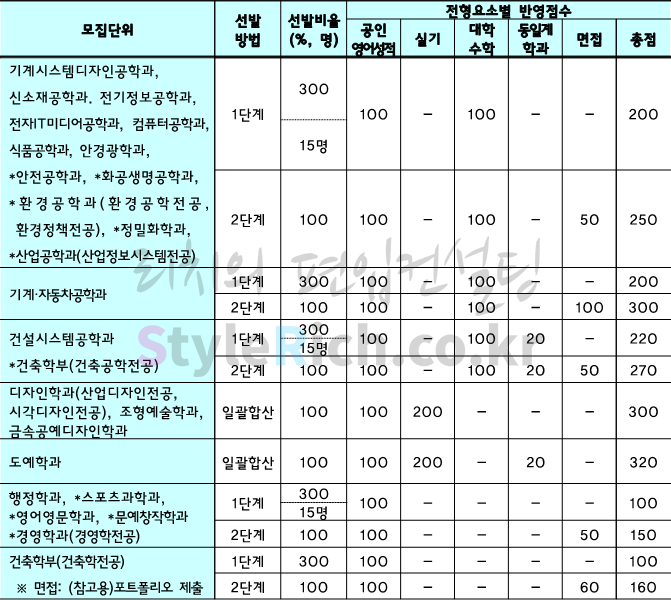 2022학년도 서울과학기술대 편입 기계시스템디자인공학과, 신소재공학과, 전기정보공학과, 전자IT미디어공학과, 컴퓨터공학과, 식품공학과, 안경광학과, 안전공학과, 화공생명공학과, 환경공학과(환경공학전공, 환경정책전공), 정밀화학과, 산업공학과(산업정보시스템전공) 전형방법은 1단계 공인영어 100, 대학수학 100, 2단계 공인영어 100, 대학수학 100, 면접 50, 기계·자동차공학과 전형방법은 1단계 공인영어 100, 대학수학 100, 2단계 공인영어 100, 대학수학 100, 면접 100, 건설시스템공학과, 건축학부(건축공학전공) 전형방법은 공인영어 100, 대학수학 100, 동일계학과 20, 2단계 공인영어 100, 대학수학 100, 동일계학과 20, 면접 50, 디자인학과(산업디자인전공, 시각디자인전공), 조형예술학과, 금속공예디자인학과 전형방법은 공인영어 100, 실기 200, 도예학과 공인영어 100, 실기 200, 동일계학과 20, 행정학과, 스포츠과학과, 영어영문학과, 문예창작학과, 경영학과(경영학전공) 전형방법은 공인영어 100, 2단계 공인영어 100, 면접 50, 건축학부(건축학전공) 전형방법은 1단계 공인영어 100, 2단계 공인영어 100, 면접60입니다.