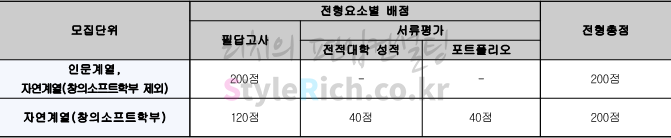 2022학년도 세종대 편입 자연(창의소프트학부) 전형방법 필답고사 60%, 전적대학 성적 20%, 포트폴리오 20%입니다.