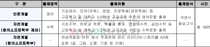 2022학년도 세종대 편입 인문 전형방법은 영어 필답고사 100%, 자연(창의소프트학부 제외) 전형방법은 수학 필답고사 100%입니다.