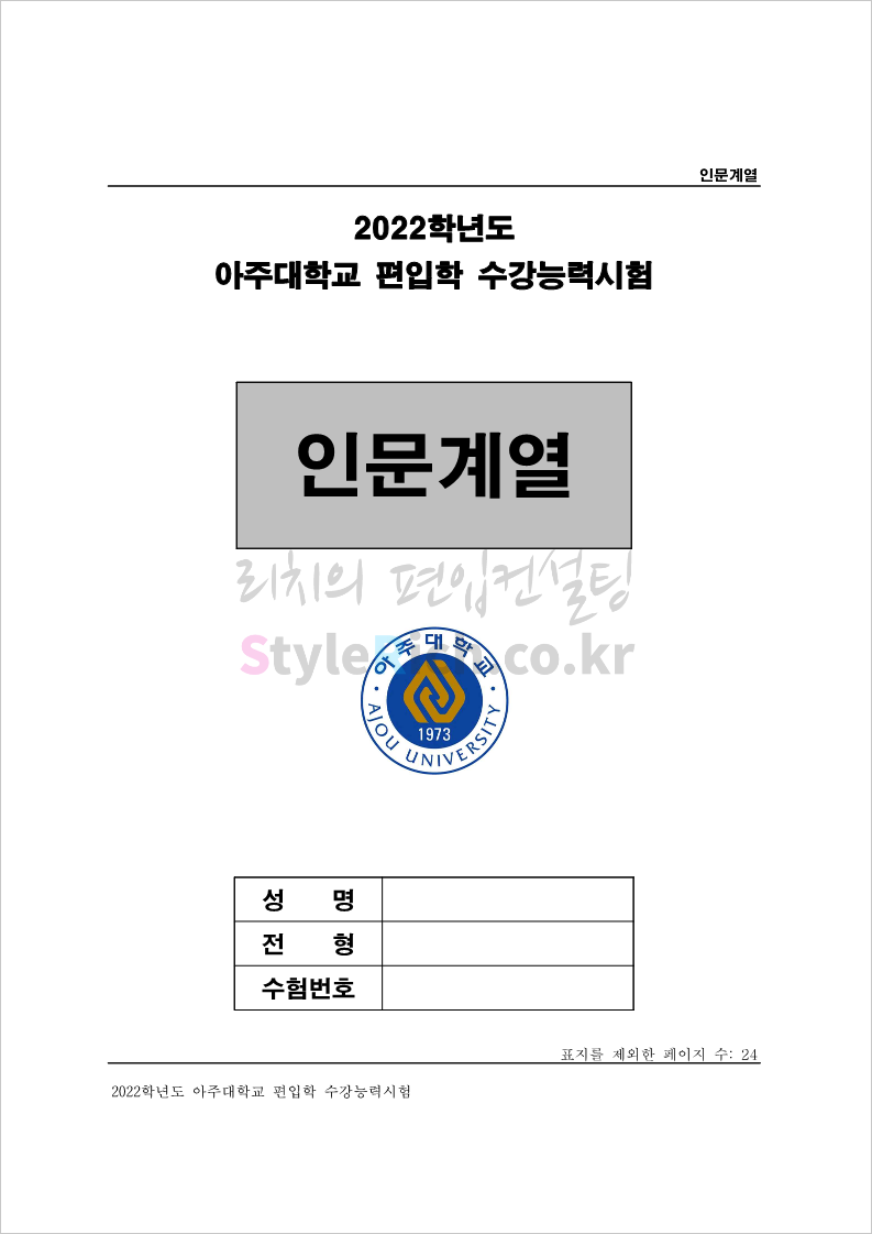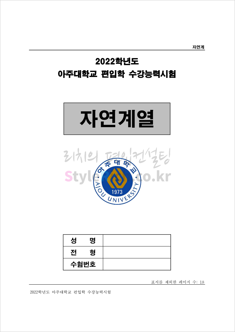 2022학년도 아주대 편입 기출문제 다운받기
