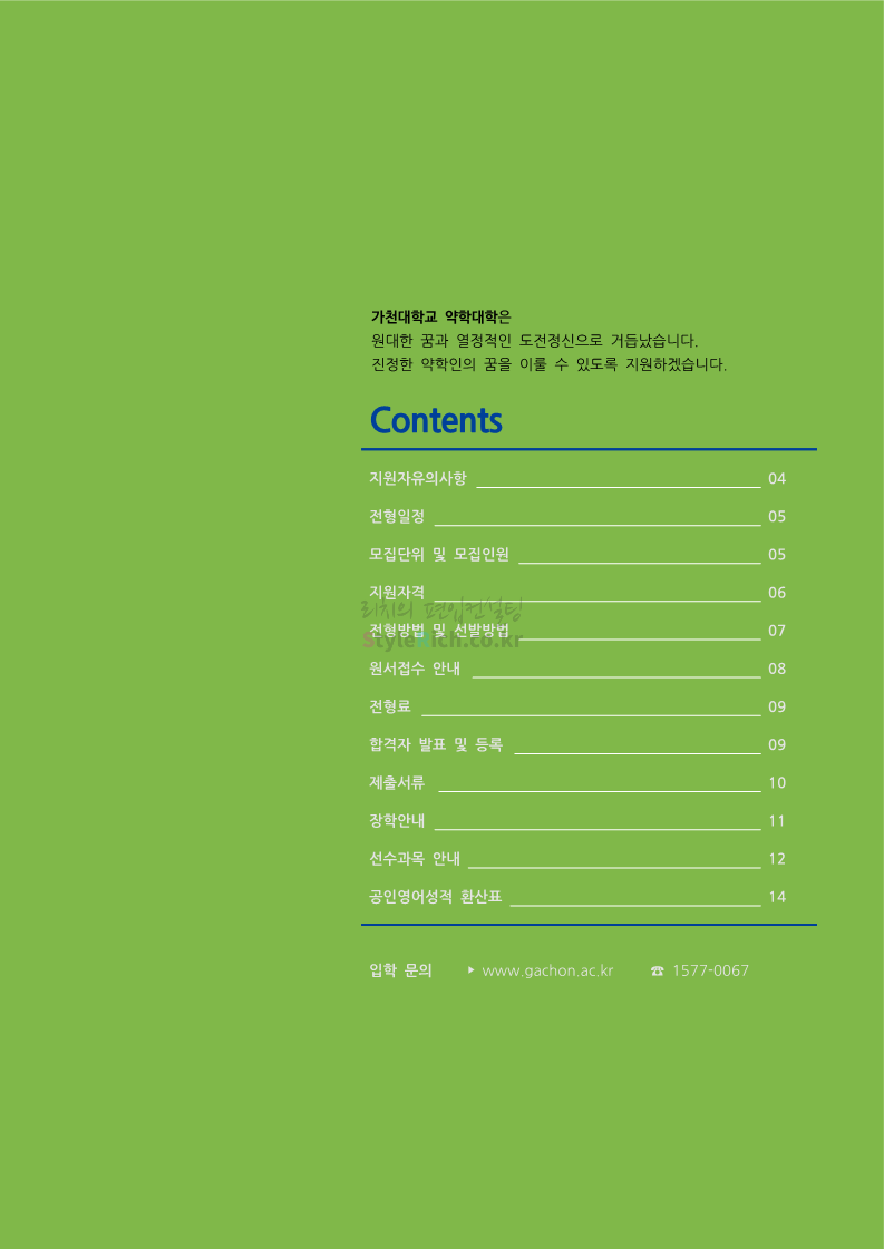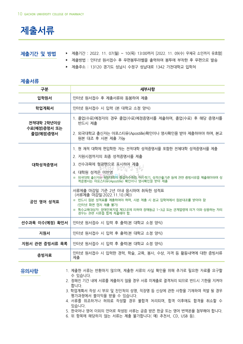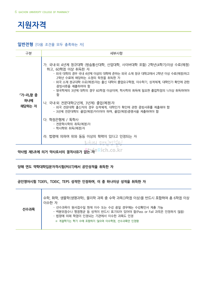 가천대 약대편입 2023학년도 모집요강 간편하게 보자! 2022.09.06 23:51 약대편입 모집요강/2023학년도 약대 모집요강 2023학년도 가천대 약대편입 모집요강(2022.07.29 기준)을 간편하게 확인하세요. * 최종 모집요강 발표 이후에도 내용의 일부가 변경될 수 있으니 지원 전 반드시 가천대 입학처의 모집요강을 확인 바랍니다. 2023학년도 가천대 약대편입 모집요강 다운받기 <출처: 가천대> 🙏가천대학교 수강 신청 V-log🙏 | 올클? 폭망? | 똥손들의 진짜 후기 | 글로벌, 메디컬 캠퍼스 홍보대사와 함께해요 공유하기 게시글 관리 리치의 편입컨설팅 저작자표시 비영리 변경금지 (새창열림) '약대편입 모집요강 > 2023학년도 약대 모집요강' 카테고리의 다른 글 단국대(천안) 약대편입 2023학년도 모집요강 간편하게 보자! (0) 2022.09.10 고려대(세종) 약대편입 2023학년도 모집요강 간편하게 보자! (0) 2022.09.10 경희대 약대편입 2023학년도 모집요강 간편하게 보자! (0) 2022.09.10 강원대 약대편입 2023학년도 모집요강 간편하게 보자! (0) 2022.09.10 가톨릭대 약대편입 2023학년도 모집요강 간편하게 보자! (0) 2022.09.07 댓글 공유하기 다른 글 댓글 이 글 공유하기 구독하기 구독하기 카카오톡 카카오톡 라인 라인 트위터 트위터 Facebook Facebook 카카오스토리 카카오스토리 밴드 밴드 네이버 블로그 네이버 블로그 Pocket Pocket Evernote Evernote 다른 글 고려대(세종) 약대편입 2023학년도 모집요강 간편하게 보자! 고려대(세종) 약대편입 2023학년도 모집요강 간편하게 보자! 2022.09.10 경희대 약대편입 2023학년도 모집요강 간편하게 보자! 경희대 약대편입 2023학년도 모집요강 간편하게 보자! 2022.09.10 강원대 약대편입 2023학년도 모집요강 간편하게 보자! 강원대 약대편입 2023학년도 모집요강 간편하게 보자! 2022.09.10 가톨릭대 약대편입 2023학년도 모집요강 간편하게 보자! 가톨릭대 약대편입 2023학년도 모집요강 간편하게 보자! 2022.09.07 다른 글 더 둘러보기