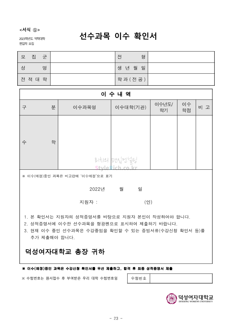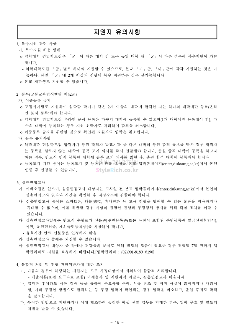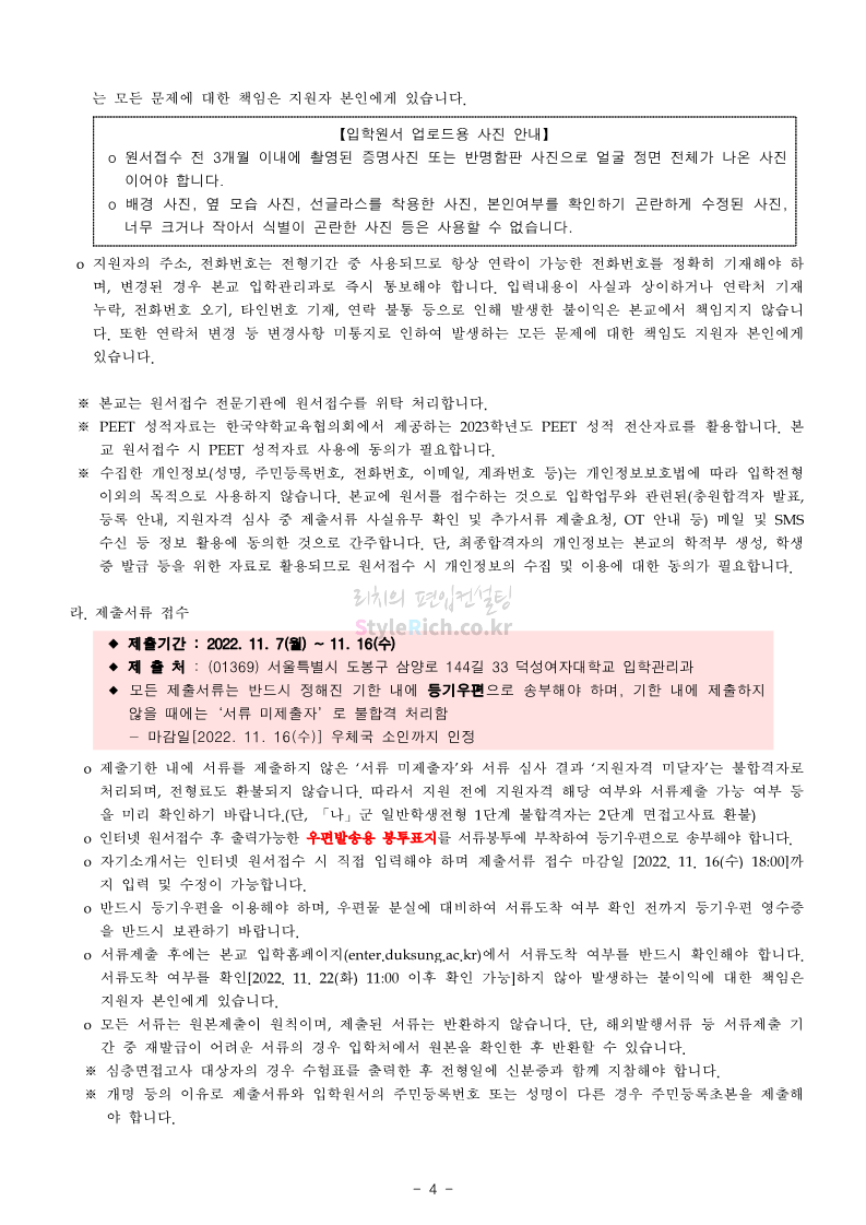 덕성여대 약대편입 2023학년도 모집요강 간편하게 보자! 2022.09.10 13:02 약대편입 모집요강/2023학년도 약대 모집요강 2023학년도 덕성여대 약대편입 모집요강(2022.08.05 기준)을 간편하게 확인하세요. * 최종 모집요강 발표 이후에도 내용의 일부가 변경될 수 있으니 지원 전 반드시 덕성여대 입학처의 모집요강을 확인 바랍니다. 2023학년도 덕성여대 약대편입 모집요강 다운받기 <출처: 덕성여대> 2022학년도 덕성여자대학교 홍보동영상 공유하기 게시글 관리 리치의 편입컨설팅 저작자표시 비영리 변경금지 (새창열림) '약대편입 모집요강 > 2023학년도 약대 모집요강' 카테고리의 다른 글 동덕여대 약대편입 2023학년도 모집요강 간편하게 보자! (0) 2022.09.10 동국대 약대편입 2023학년도 모집요강 간편하게 보자! (0) 2022.09.10 단국대(천안) 약대편입 2023학년도 모집요강 간편하게 보자! (0) 2022.09.10 고려대(세종) 약대편입 2023학년도 모집요강 간편하게 보자! (0) 2022.09.10 경희대 약대편입 2023학년도 모집요강 간편하게 보자! (0) 2022.09.10 댓글 공유하기 다른 글 댓글 이 글 공유하기 구독하기 구독하기 카카오톡 카카오톡 라인 라인 트위터 트위터 Facebook Facebook 카카오스토리 카카오스토리 밴드 밴드 네이버 블로그 네이버 블로그 Pocket Pocket Evernote Evernote 다른 글 동덕여대 약대편입 2023학년도 모집요강 간편하게 보자! 동덕여대 약대편입 2023학년도 모집요강 간편하게 보자! 2022.09.10 동국대 약대편입 2023학년도 모집요강 간편하게 보자! 동국대 약대편입 2023학년도 모집요강 간편하게 보자! 2022.09.10 단국대(천안) 약대편입 2023학년도 모집요강 간편하게 보자! 단국대(천안) 약대편입 2023학년도 모집요강 간편하게 보자! 2022.09.10 고려대(세종) 약대편입 2023학년도 모집요강 간편하게 보자! 고려대(세종) 약대편입 2023학년도 모집요강 간편하게 보자! 2022.09.10 다른 글 더 둘러보기