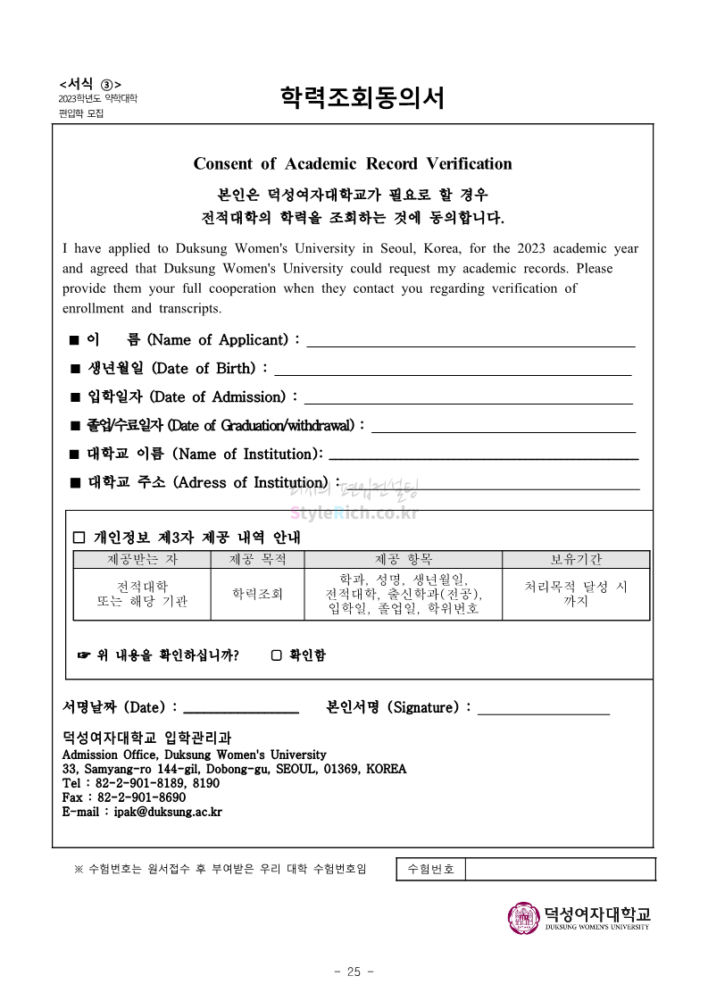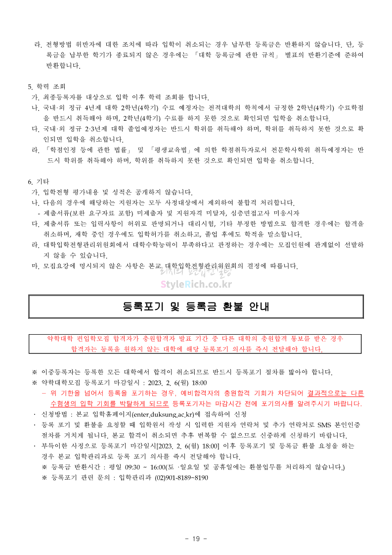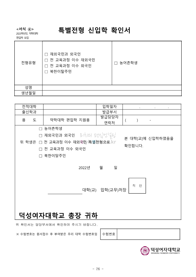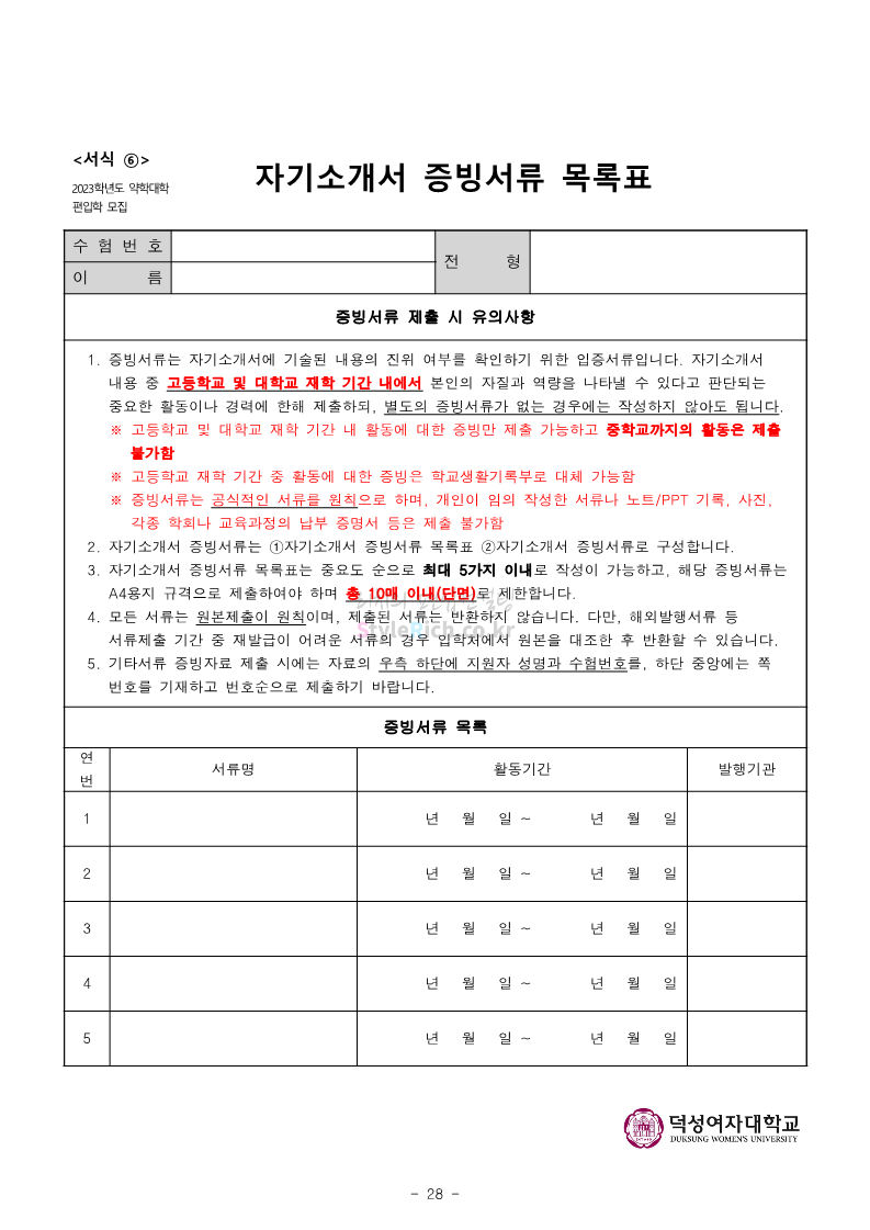 덕성여대 약대편입 2023학년도 모집요강 간편하게 보자! 2022.09.10 13:02 약대편입 모집요강/2023학년도 약대 모집요강 2023학년도 덕성여대 약대편입 모집요강(2022.08.05 기준)을 간편하게 확인하세요. * 최종 모집요강 발표 이후에도 내용의 일부가 변경될 수 있으니 지원 전 반드시 덕성여대 입학처의 모집요강을 확인 바랍니다. 2023학년도 덕성여대 약대편입 모집요강 다운받기 <출처: 덕성여대> 2022학년도 덕성여자대학교 홍보동영상 공유하기 게시글 관리 리치의 편입컨설팅 저작자표시 비영리 변경금지 (새창열림) '약대편입 모집요강 > 2023학년도 약대 모집요강' 카테고리의 다른 글 동덕여대 약대편입 2023학년도 모집요강 간편하게 보자! (0) 2022.09.10 동국대 약대편입 2023학년도 모집요강 간편하게 보자! (0) 2022.09.10 단국대(천안) 약대편입 2023학년도 모집요강 간편하게 보자! (0) 2022.09.10 고려대(세종) 약대편입 2023학년도 모집요강 간편하게 보자! (0) 2022.09.10 경희대 약대편입 2023학년도 모집요강 간편하게 보자! (0) 2022.09.10 댓글 공유하기 다른 글 댓글 이 글 공유하기 구독하기 구독하기 카카오톡 카카오톡 라인 라인 트위터 트위터 Facebook Facebook 카카오스토리 카카오스토리 밴드 밴드 네이버 블로그 네이버 블로그 Pocket Pocket Evernote Evernote 다른 글 동덕여대 약대편입 2023학년도 모집요강 간편하게 보자! 동덕여대 약대편입 2023학년도 모집요강 간편하게 보자! 2022.09.10 동국대 약대편입 2023학년도 모집요강 간편하게 보자! 동국대 약대편입 2023학년도 모집요강 간편하게 보자! 2022.09.10 단국대(천안) 약대편입 2023학년도 모집요강 간편하게 보자! 단국대(천안) 약대편입 2023학년도 모집요강 간편하게 보자! 2022.09.10 고려대(세종) 약대편입 2023학년도 모집요강 간편하게 보자! 고려대(세종) 약대편입 2023학년도 모집요강 간편하게 보자! 2022.09.10 다른 글 더 둘러보기