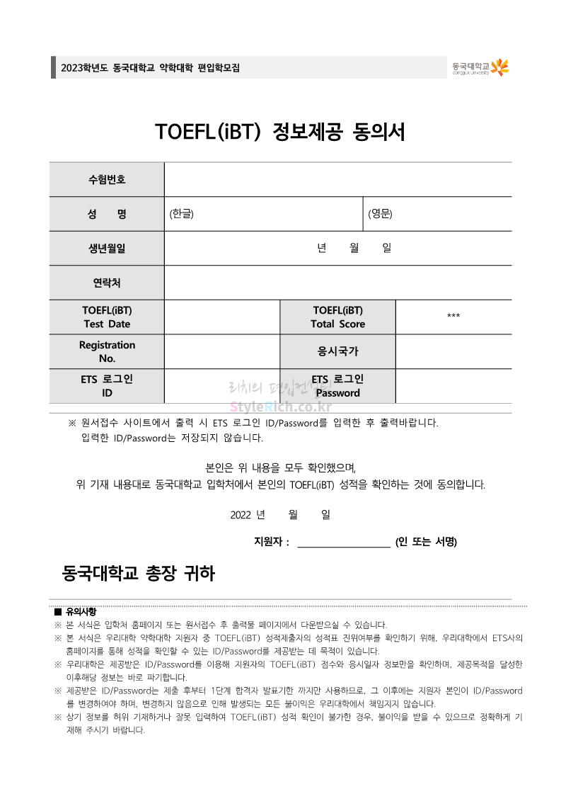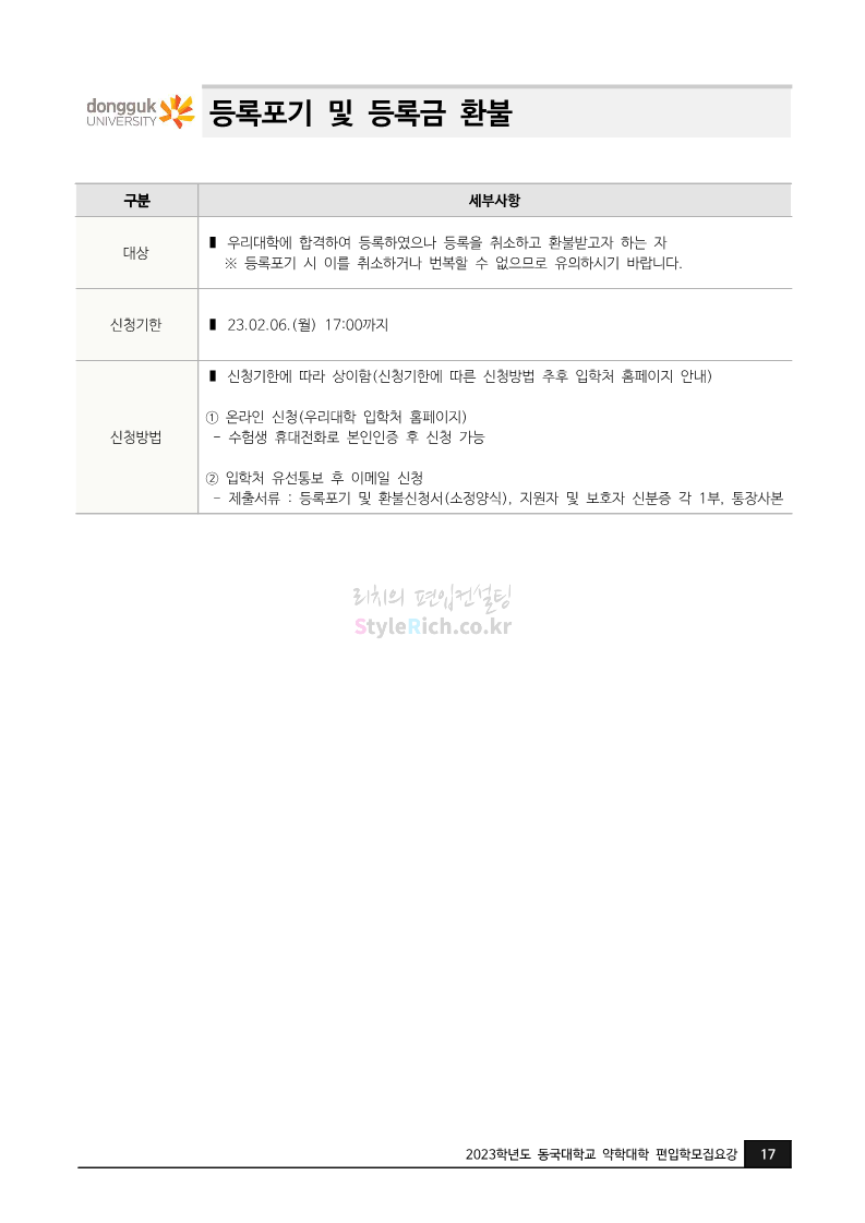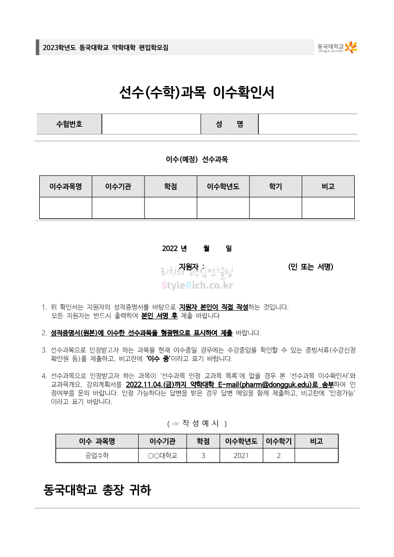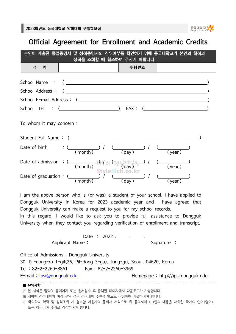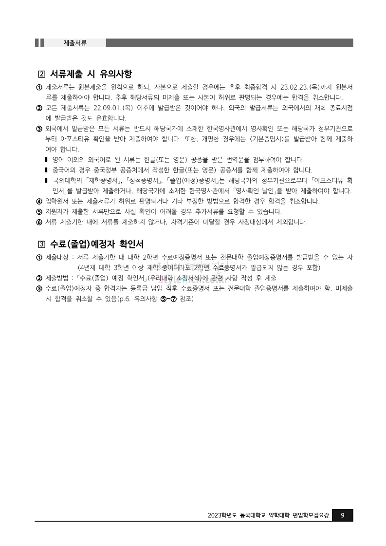 동국대 약대편입 2023학년도 모집요강 간편하게 보자! 2022.09.10 15:01 약대편입 모집요강/2023학년도 약대 모집요강 2023학년도 동국대 약대편입 모집요강(2022.08.03 기준)을 간편하게 확인하세요. * 최종 모집요강 발표 이후에도 내용의 일부가 변경될 수 있으니 지원 전 반드시 동국대 입학처의 모집요강을 확인 바랍니다. 2023학년도 동국대 약대편입 모집요강 다운받기 <출처: 동국대> [동슐랭 EP.2] 동국대 노포 맛집 - 홍탁집 리뷰 공유하기 게시글 관리 리치의 편입컨설팅 저작자표시 비영리 변경금지 (새창열림) '약대편입 모집요강 > 2023학년도 약대 모집요강' 카테고리의 다른 글 부산대 약대편입 2023학년도 모집요강 간편하게 보자! (0) 2022.09.10 동덕여대 약대편입 2023학년도 모집요강 간편하게 보자! (0) 2022.09.10 덕성여대 약대편입 2023학년도 모집요강 간편하게 보자! (0) 2022.09.10 단국대(천안) 약대편입 2023학년도 모집요강 간편하게 보자! (0) 2022.09.10 고려대(세종) 약대편입 2023학년도 모집요강 간편하게 보자! (0) 2022.09.10 댓글 공유하기 다른 글 댓글 이 글 공유하기 구독하기 구독하기 카카오톡 카카오톡 라인 라인 트위터 트위터 Facebook Facebook 카카오스토리 카카오스토리 밴드 밴드 네이버 블로그 네이버 블로그 Pocket Pocket Evernote Evernote 다른 글 부산대 약대편입 2023학년도 모집요강 간편하게 보자! 부산대 약대편입 2023학년도 모집요강 간편하게 보자! 2022.09.10 동덕여대 약대편입 2023학년도 모집요강 간편하게 보자! 동덕여대 약대편입 2023학년도 모집요강 간편하게 보자! 2022.09.10 덕성여대 약대편입 2023학년도 모집요강 간편하게 보자! 덕성여대 약대편입 2023학년도 모집요강 간편하게 보자! 2022.09.10 단국대(천안) 약대편입 2023학년도 모집요강 간편하게 보자! 단국대(천안) 약대편입 2023학년도 모집요강 간편하게 보자! 2022.09.10 다른 글 더 둘러보기
