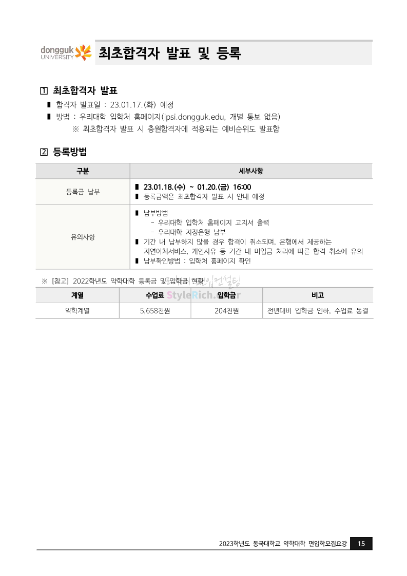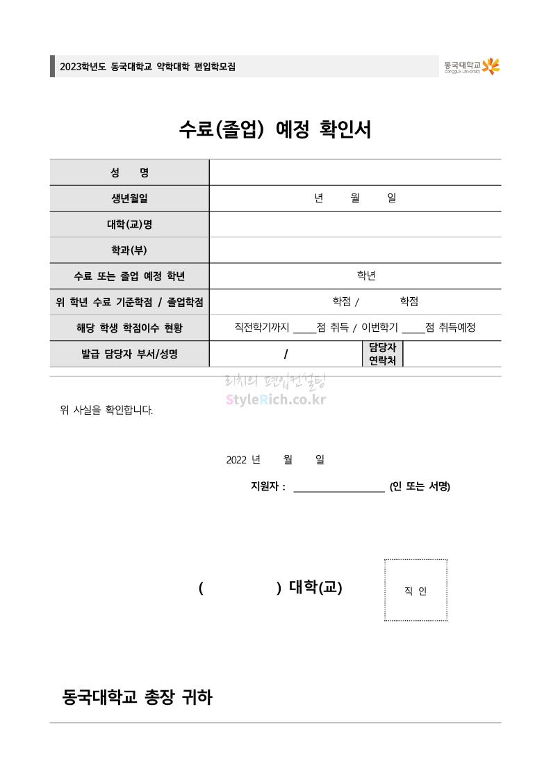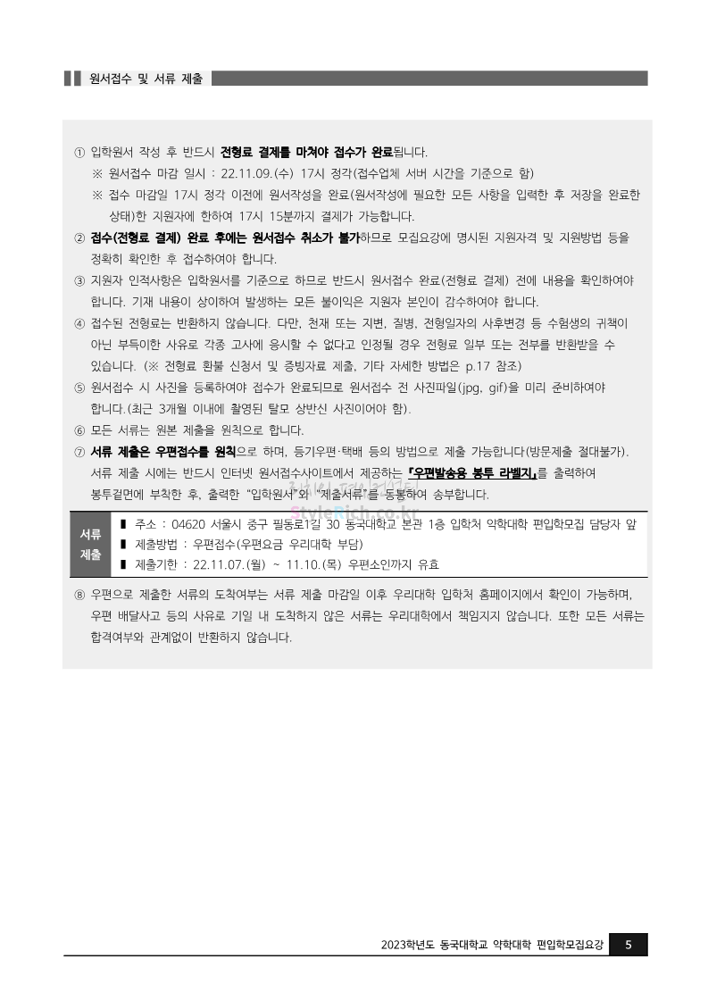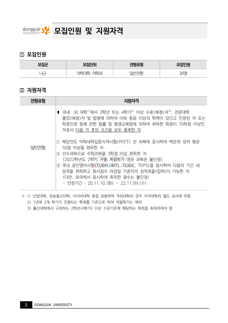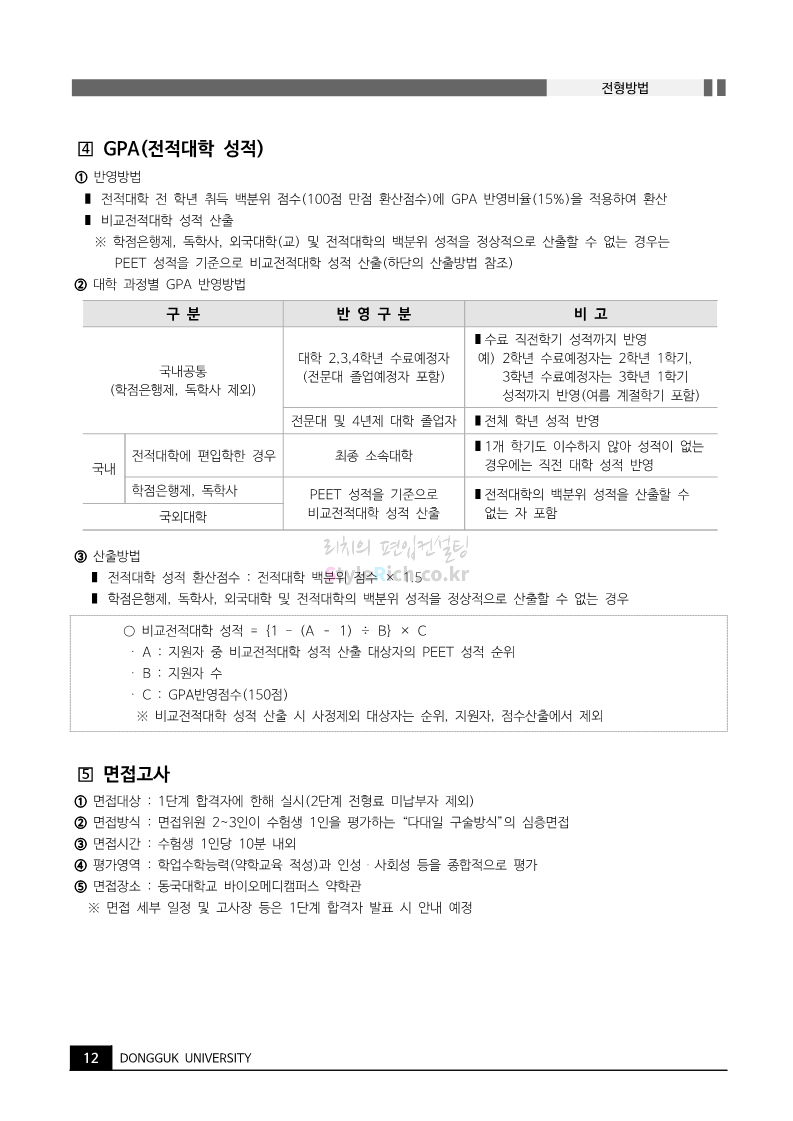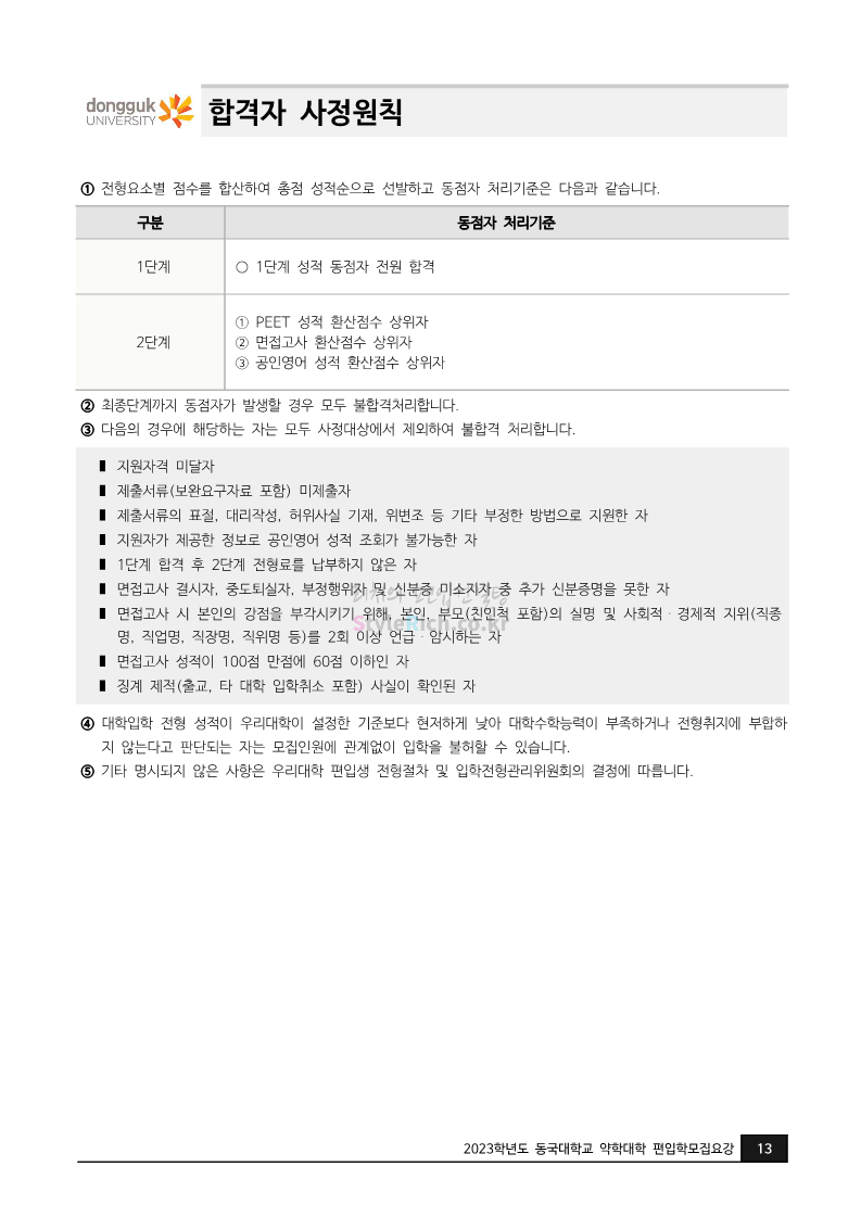 동국대 약대편입 2023학년도 모집요강 간편하게 보자! 2022.09.10 15:01 약대편입 모집요강/2023학년도 약대 모집요강 2023학년도 동국대 약대편입 모집요강(2022.08.03 기준)을 간편하게 확인하세요. * 최종 모집요강 발표 이후에도 내용의 일부가 변경될 수 있으니 지원 전 반드시 동국대 입학처의 모집요강을 확인 바랍니다. 2023학년도 동국대 약대편입 모집요강 다운받기 <출처: 동국대> [동슐랭 EP.2] 동국대 노포 맛집 - 홍탁집 리뷰 공유하기 게시글 관리 리치의 편입컨설팅 저작자표시 비영리 변경금지 (새창열림) '약대편입 모집요강 > 2023학년도 약대 모집요강' 카테고리의 다른 글 부산대 약대편입 2023학년도 모집요강 간편하게 보자! (0) 2022.09.10 동덕여대 약대편입 2023학년도 모집요강 간편하게 보자! (0) 2022.09.10 덕성여대 약대편입 2023학년도 모집요강 간편하게 보자! (0) 2022.09.10 단국대(천안) 약대편입 2023학년도 모집요강 간편하게 보자! (0) 2022.09.10 고려대(세종) 약대편입 2023학년도 모집요강 간편하게 보자! (0) 2022.09.10 댓글 공유하기 다른 글 댓글 이 글 공유하기 구독하기 구독하기 카카오톡 카카오톡 라인 라인 트위터 트위터 Facebook Facebook 카카오스토리 카카오스토리 밴드 밴드 네이버 블로그 네이버 블로그 Pocket Pocket Evernote Evernote 다른 글 부산대 약대편입 2023학년도 모집요강 간편하게 보자! 부산대 약대편입 2023학년도 모집요강 간편하게 보자! 2022.09.10 동덕여대 약대편입 2023학년도 모집요강 간편하게 보자! 동덕여대 약대편입 2023학년도 모집요강 간편하게 보자! 2022.09.10 덕성여대 약대편입 2023학년도 모집요강 간편하게 보자! 덕성여대 약대편입 2023학년도 모집요강 간편하게 보자! 2022.09.10 단국대(천안) 약대편입 2023학년도 모집요강 간편하게 보자! 단국대(천안) 약대편입 2023학년도 모집요강 간편하게 보자! 2022.09.10 다른 글 더 둘러보기