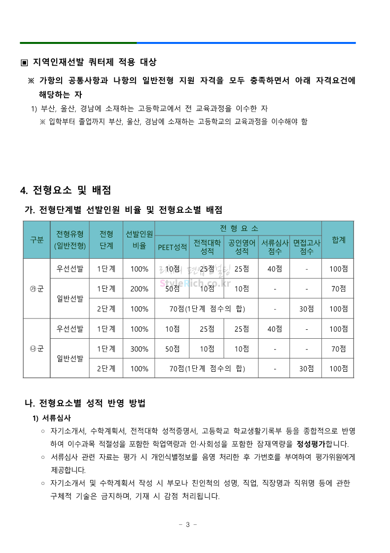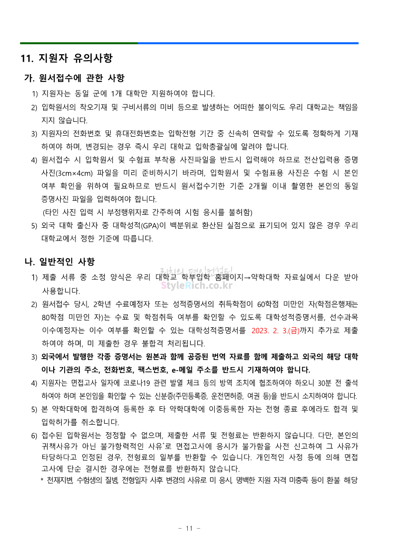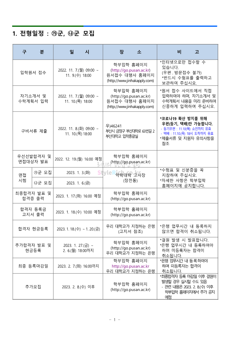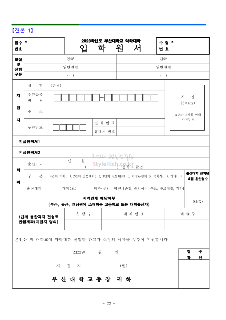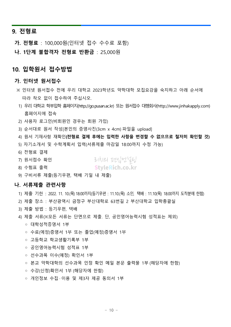 부산대 약대편입 2023학년도 모집요강 간편하게 보자! 2022.09.10 16:07 약대편입 모집요강/2023학년도 약대 모집요강 2023학년도 부산대 약대편입 모집요강(2022.07.28 기준)을 간편하게 확인하세요. ** 최종 모집요강 발표 이후에도 내용의 일부가 변경될 수 있으니 지원 전 반드시 부산대 입학처의 모집요강을 확인 바랍니다. 2023학년도 부산대 약대편입 모집요강 다운받기 <출처: 부산대> 부산대학교를 소개합니다. 홍보대사 푸름(PURM)과 함께 [2023 대학수시입학 MBC특별방송] 공유하기 게시글 관리 리치의 편입컨설팅 저작자표시 비영리 변경금지 (새창열림) '약대편입 모집요강 > 2023학년도 약대 모집요강' 카테고리의 다른 글 성균관대 약대편입 2023학년도 모집요강 간편하게 보자! (0) 2022.09.10 삼육대 약대편입 2023학년도 모집요강 간편하게 보자! (0) 2022.09.10 동덕여대 약대편입 2023학년도 모집요강 간편하게 보자! (0) 2022.09.10 동국대 약대편입 2023학년도 모집요강 간편하게 보자! (0) 2022.09.10 덕성여대 약대편입 2023학년도 모집요강 간편하게 보자! (0) 2022.09.10 댓글 공유하기 다른 글 댓글 이 글 공유하기 구독하기 구독하기 카카오톡 카카오톡 라인 라인 트위터 트위터 Facebook Facebook 카카오스토리 카카오스토리 밴드 밴드 네이버 블로그 네이버 블로그 Pocket Pocket Evernote Evernote 다른 글 성균관대 약대편입 2023학년도 모집요강 간편하게 보자! 성균관대 약대편입 2023학년도 모집요강 간편하게 보자! 2022.09.10 삼육대 약대편입 2023학년도 모집요강 간편하게 보자! 삼육대 약대편입 2023학년도 모집요강 간편하게 보자! 2022.09.10 동덕여대 약대편입 2023학년도 모집요강 간편하게 보자! 동덕여대 약대편입 2023학년도 모집요강 간편하게 보자! 2022.09.10 동국대 약대편입 2023학년도 모집요강 간편하게 보자! 동국대 약대편입 2023학년도 모집요강 간편하게 보자! 2022.09.10 다른 글 더 둘러보기