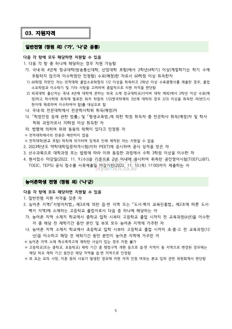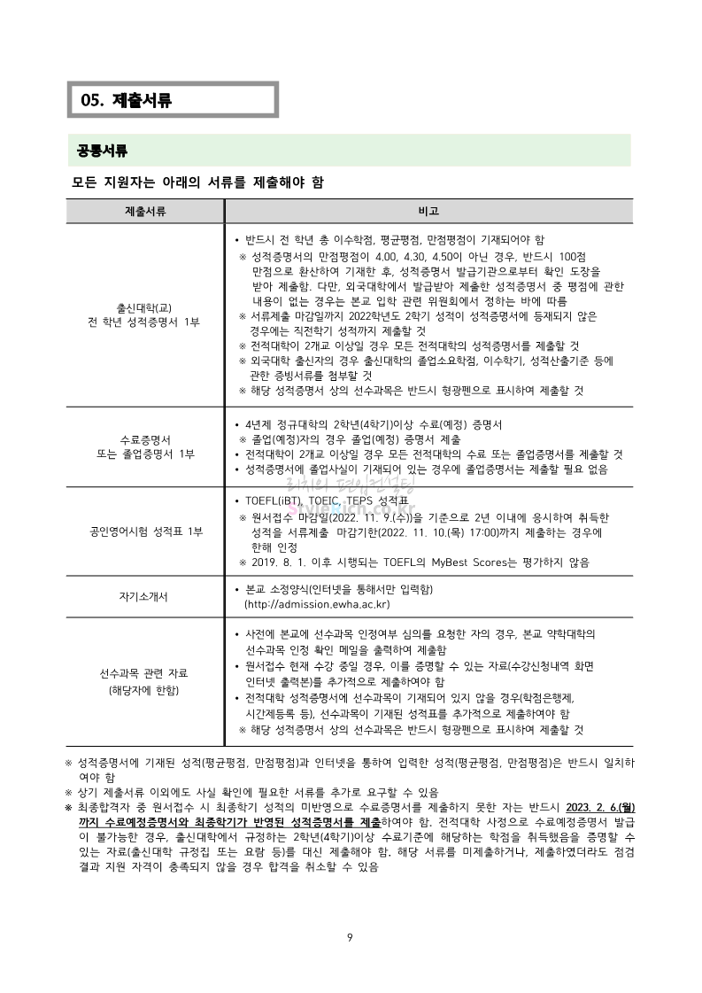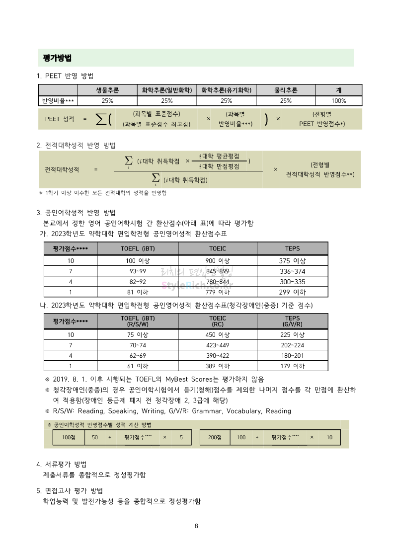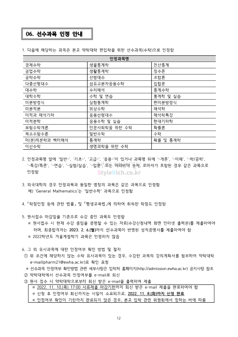 이화여대 약대편입 2023학년도 모집요강 간편하게 보자! 2022.09.11 12:01 약대편입 모집요강/2023학년도 약대 모집요강 2023학년도 이화여대 약대편입 모집요강(2022.08.05 기준)을 간편하게 확인하세요. * 최종 모집요강 발표 이후에도 내용의 일부가 변경될 수 있으니 지원 전 반드시 이화여대 입학처의 모집요강을 확인 바랍니다. 2023학년도 이화여대 약대편입 모집요강 다운받기 <출처: 이화여대> 나답게 이화답게 Video #1. Story Version 공유하기 게시글 관리 리치의 편입컨설팅 저작자표시 비영리 변경금지 (새창열림) '약대편입 모집요강 > 2023학년도 약대 모집요강' 카테고리의 다른 글 전북대 약대편입 2023학년도 모집요강 간편하게 보자! (0) 2022.09.11 전남대 약대편입 2023학년도 모집요강 간편하게 보자! (0) 2022.09.11 영남대 약대편입 2023학년도 모집요강 간편하게 보자! (0) 2022.09.11 아주대 약대편입 2023학년도 모집요강 간편하게 보자! (0) 2022.09.11 숙명여대 약대편입 2023학년도 모집요강 간편하게 보자! (0) 2022.09.11 댓글 공유하기 다른 글 댓글 이 글 공유하기 구독하기 구독하기 카카오톡 카카오톡 라인 라인 트위터 트위터 Facebook Facebook 카카오스토리 카카오스토리 밴드 밴드 네이버 블로그 네이버 블로그 Pocket Pocket Evernote Evernote 다른 글 전북대 약대편입 2023학년도 모집요강 간편하게 보자! 전북대 약대편입 2023학년도 모집요강 간편하게 보자! 2022.09.11 전남대 약대편입 2023학년도 모집요강 간편하게 보자! 전남대 약대편입 2023학년도 모집요강 간편하게 보자! 2022.09.11 영남대 약대편입 2023학년도 모집요강 간편하게 보자! 영남대 약대편입 2023학년도 모집요강 간편하게 보자! 2022.09.11 아주대 약대편입 2023학년도 모집요강 간편하게 보자! 아주대 약대편입 2023학년도 모집요강 간편하게 보자! 2022.09.11 다른 글 더 둘러보기
