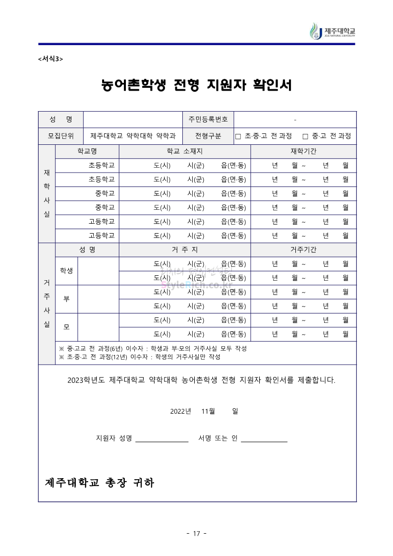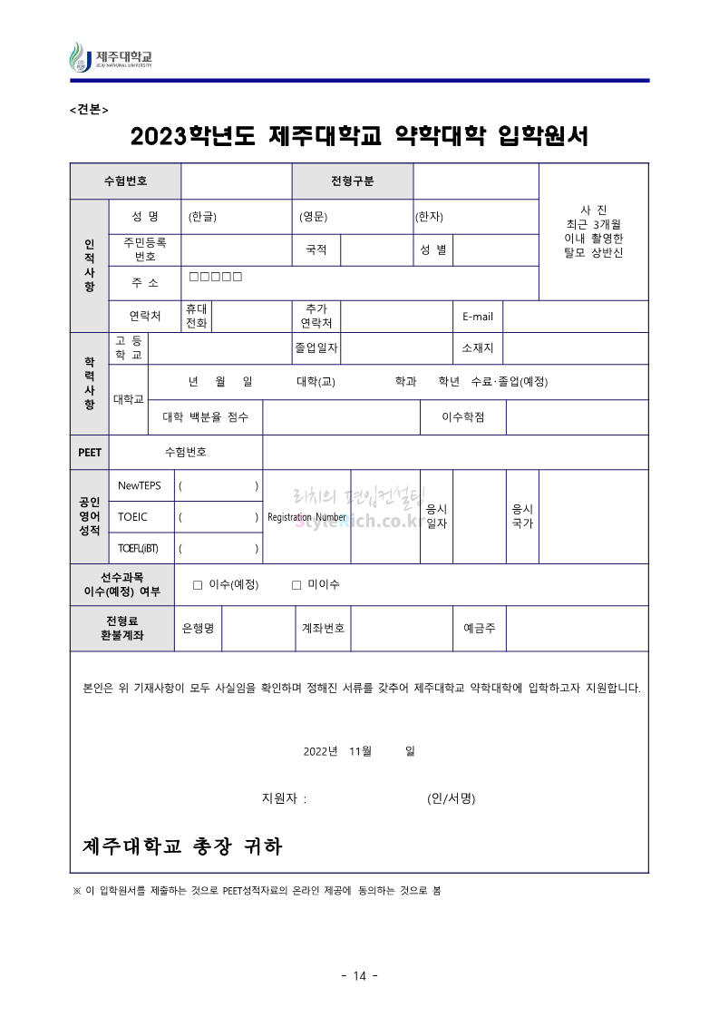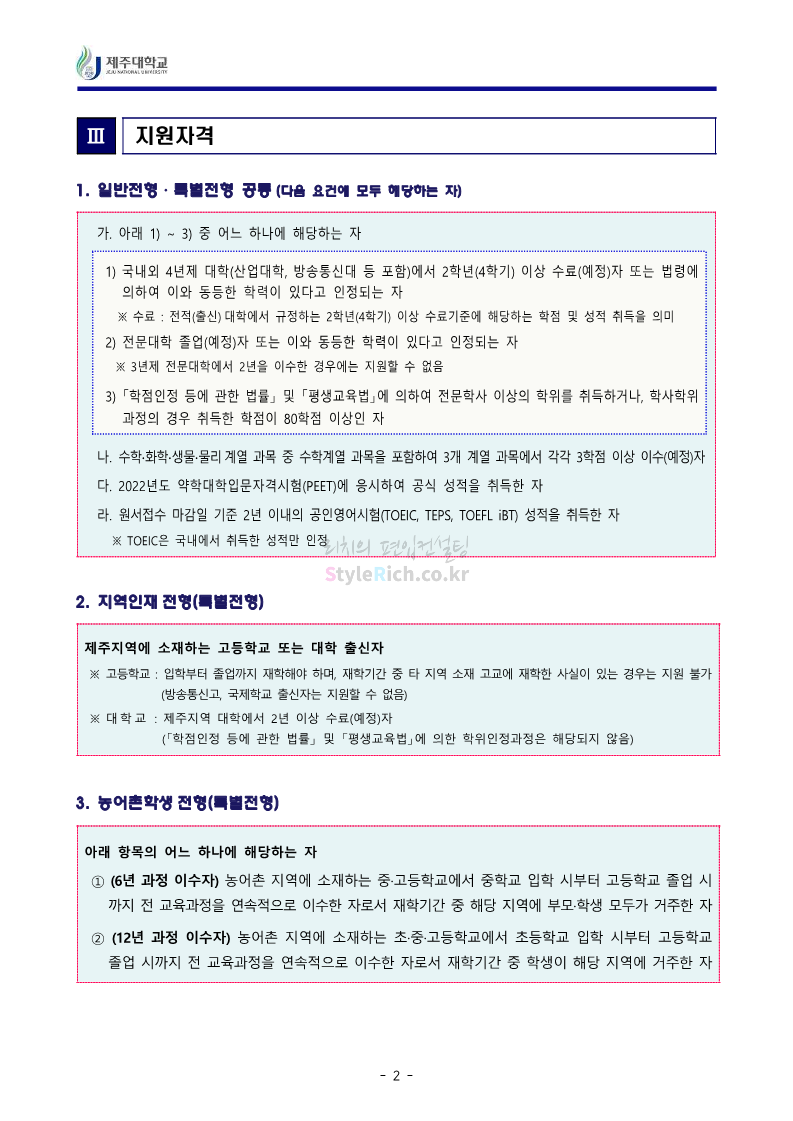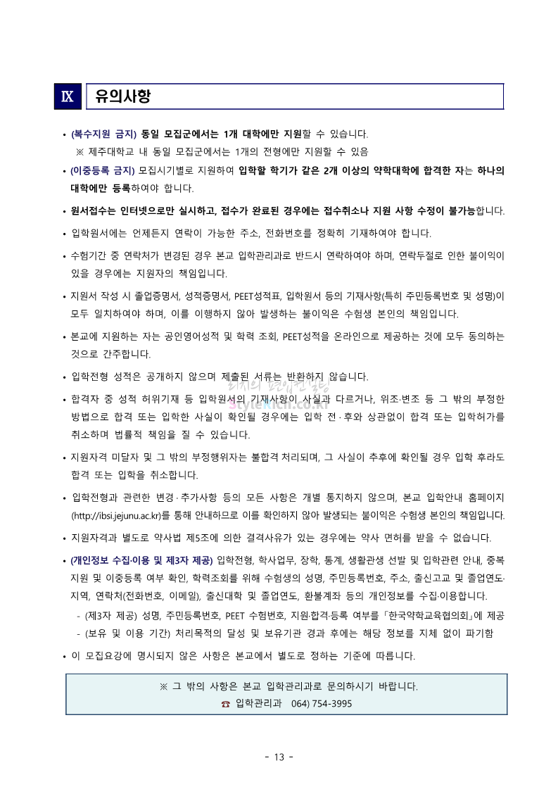 제주대 약대편입 2023학년도 모집요강 간편하게 보자! 2022.09.11 14:55 약대편입 모집요강/2023학년도 약대 모집요강 2023학년도 제주대 약대편입 모집요강을 간편하게 확인하세요. * 최종 모집요강 발표 이후에도 내용의 일부가 변경될 수 있으니 지원 전 반드시 제주대 입학처의 모집요강을 확인 바랍니다. 2023학년도 제주대 약대편입 모집요강 다운받기 <출처: 제주대> 공유하기 게시글 관리 리치의 편입컨설팅 저작자표시 비영리 변경금지 (새창열림) '약대편입 모집요강 > 2023학년도 약대 모집요강' 카테고리의 다른 글 충남대 약대편입 2023학년도 모집요강 간편하게 보자! (0) 2022.09.11 중앙대 약대편입 2023학년도 모집요강 간편하게 보자! (0) 2022.09.11 전북대 약대편입 2023학년도 모집요강 간편하게 보자! (0) 2022.09.11 전남대 약대편입 2023학년도 모집요강 간편하게 보자! (0) 2022.09.11 이화여대 약대편입 2023학년도 모집요강 간편하게 보자! (0) 2022.09.11 댓글 공유하기 다른 글 댓글 이 글 공유하기 구독하기 구독하기 카카오톡 카카오톡 라인 라인 트위터 트위터 Facebook Facebook 카카오스토리 카카오스토리 밴드 밴드 네이버 블로그 네이버 블로그 Pocket Pocket Evernote Evernote 다른 글 충남대 약대편입 2023학년도 모집요강 간편하게 보자! 충남대 약대편입 2023학년도 모집요강 간편하게 보자! 2022.09.11 중앙대 약대편입 2023학년도 모집요강 간편하게 보자! 중앙대 약대편입 2023학년도 모집요강 간편하게 보자! 2022.09.11 전북대 약대편입 2023학년도 모집요강 간편하게 보자! 전북대 약대편입 2023학년도 모집요강 간편하게 보자! 2022.09.11 전남대 약대편입 2023학년도 모집요강 간편하게 보자! 전남대 약대편입 2023학년도 모집요강 간편하게 보자! 2022.09.11 다른 글 더 둘러보기