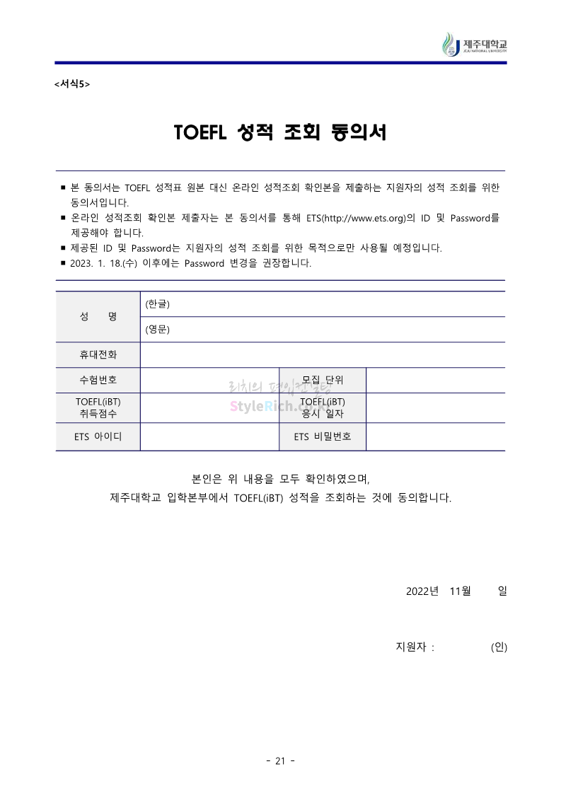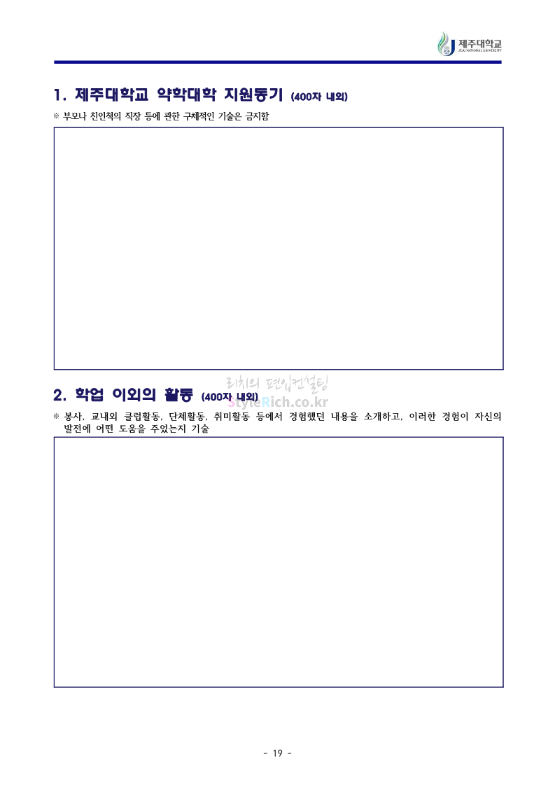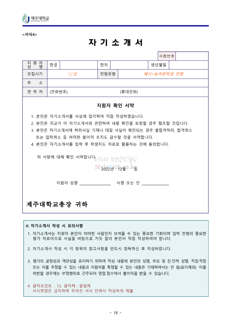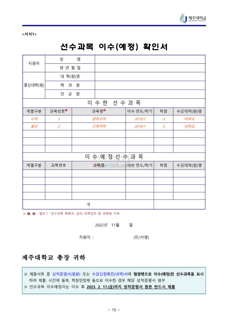 제주대 약대편입 2023학년도 모집요강 간편하게 보자! 2022.09.11 14:55 약대편입 모집요강/2023학년도 약대 모집요강 2023학년도 제주대 약대편입 모집요강을 간편하게 확인하세요. * 최종 모집요강 발표 이후에도 내용의 일부가 변경될 수 있으니 지원 전 반드시 제주대 입학처의 모집요강을 확인 바랍니다. 2023학년도 제주대 약대편입 모집요강 다운받기 <출처: 제주대> 공유하기 게시글 관리 리치의 편입컨설팅 저작자표시 비영리 변경금지 (새창열림) '약대편입 모집요강 > 2023학년도 약대 모집요강' 카테고리의 다른 글 충남대 약대편입 2023학년도 모집요강 간편하게 보자! (0) 2022.09.11 중앙대 약대편입 2023학년도 모집요강 간편하게 보자! (0) 2022.09.11 전북대 약대편입 2023학년도 모집요강 간편하게 보자! (0) 2022.09.11 전남대 약대편입 2023학년도 모집요강 간편하게 보자! (0) 2022.09.11 이화여대 약대편입 2023학년도 모집요강 간편하게 보자! (0) 2022.09.11 댓글 공유하기 다른 글 댓글 이 글 공유하기 구독하기 구독하기 카카오톡 카카오톡 라인 라인 트위터 트위터 Facebook Facebook 카카오스토리 카카오스토리 밴드 밴드 네이버 블로그 네이버 블로그 Pocket Pocket Evernote Evernote 다른 글 충남대 약대편입 2023학년도 모집요강 간편하게 보자! 충남대 약대편입 2023학년도 모집요강 간편하게 보자! 2022.09.11 중앙대 약대편입 2023학년도 모집요강 간편하게 보자! 중앙대 약대편입 2023학년도 모집요강 간편하게 보자! 2022.09.11 전북대 약대편입 2023학년도 모집요강 간편하게 보자! 전북대 약대편입 2023학년도 모집요강 간편하게 보자! 2022.09.11 전남대 약대편입 2023학년도 모집요강 간편하게 보자! 전남대 약대편입 2023학년도 모집요강 간편하게 보자! 2022.09.11 다른 글 더 둘러보기