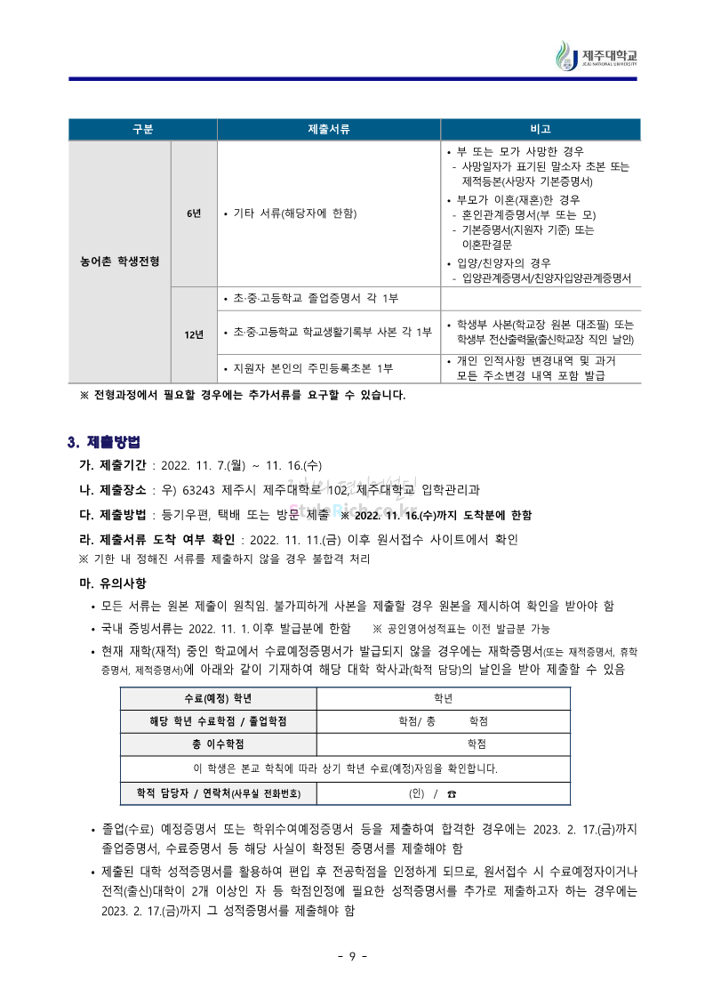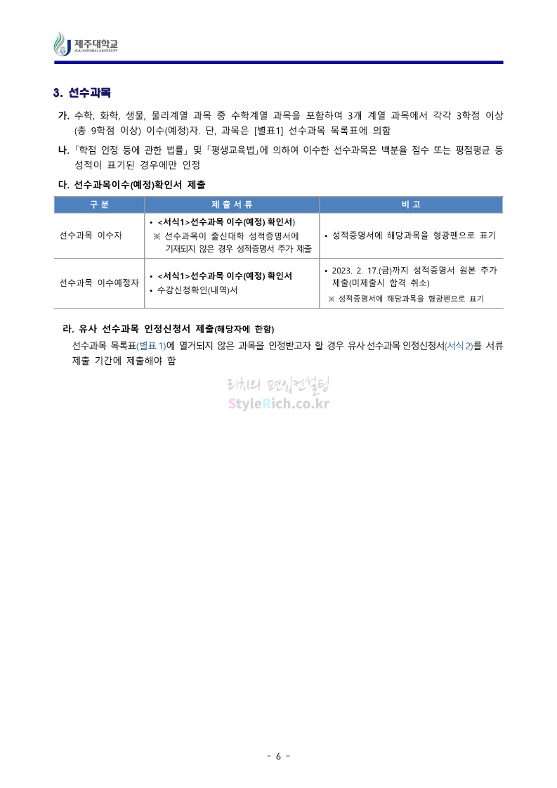 제주대 약대편입 2023학년도 모집요강 간편하게 보자! 2022.09.11 14:55 약대편입 모집요강/2023학년도 약대 모집요강 2023학년도 제주대 약대편입 모집요강을 간편하게 확인하세요. * 최종 모집요강 발표 이후에도 내용의 일부가 변경될 수 있으니 지원 전 반드시 제주대 입학처의 모집요강을 확인 바랍니다. 2023학년도 제주대 약대편입 모집요강 다운받기 <출처: 제주대> 공유하기 게시글 관리 리치의 편입컨설팅 저작자표시 비영리 변경금지 (새창열림) '약대편입 모집요강 > 2023학년도 약대 모집요강' 카테고리의 다른 글 충남대 약대편입 2023학년도 모집요강 간편하게 보자! (0) 2022.09.11 중앙대 약대편입 2023학년도 모집요강 간편하게 보자! (0) 2022.09.11 전북대 약대편입 2023학년도 모집요강 간편하게 보자! (0) 2022.09.11 전남대 약대편입 2023학년도 모집요강 간편하게 보자! (0) 2022.09.11 이화여대 약대편입 2023학년도 모집요강 간편하게 보자! (0) 2022.09.11 댓글 공유하기 다른 글 댓글 이 글 공유하기 구독하기 구독하기 카카오톡 카카오톡 라인 라인 트위터 트위터 Facebook Facebook 카카오스토리 카카오스토리 밴드 밴드 네이버 블로그 네이버 블로그 Pocket Pocket Evernote Evernote 다른 글 충남대 약대편입 2023학년도 모집요강 간편하게 보자! 충남대 약대편입 2023학년도 모집요강 간편하게 보자! 2022.09.11 중앙대 약대편입 2023학년도 모집요강 간편하게 보자! 중앙대 약대편입 2023학년도 모집요강 간편하게 보자! 2022.09.11 전북대 약대편입 2023학년도 모집요강 간편하게 보자! 전북대 약대편입 2023학년도 모집요강 간편하게 보자! 2022.09.11 전남대 약대편입 2023학년도 모집요강 간편하게 보자! 전남대 약대편입 2023학년도 모집요강 간편하게 보자! 2022.09.11 다른 글 더 둘러보기