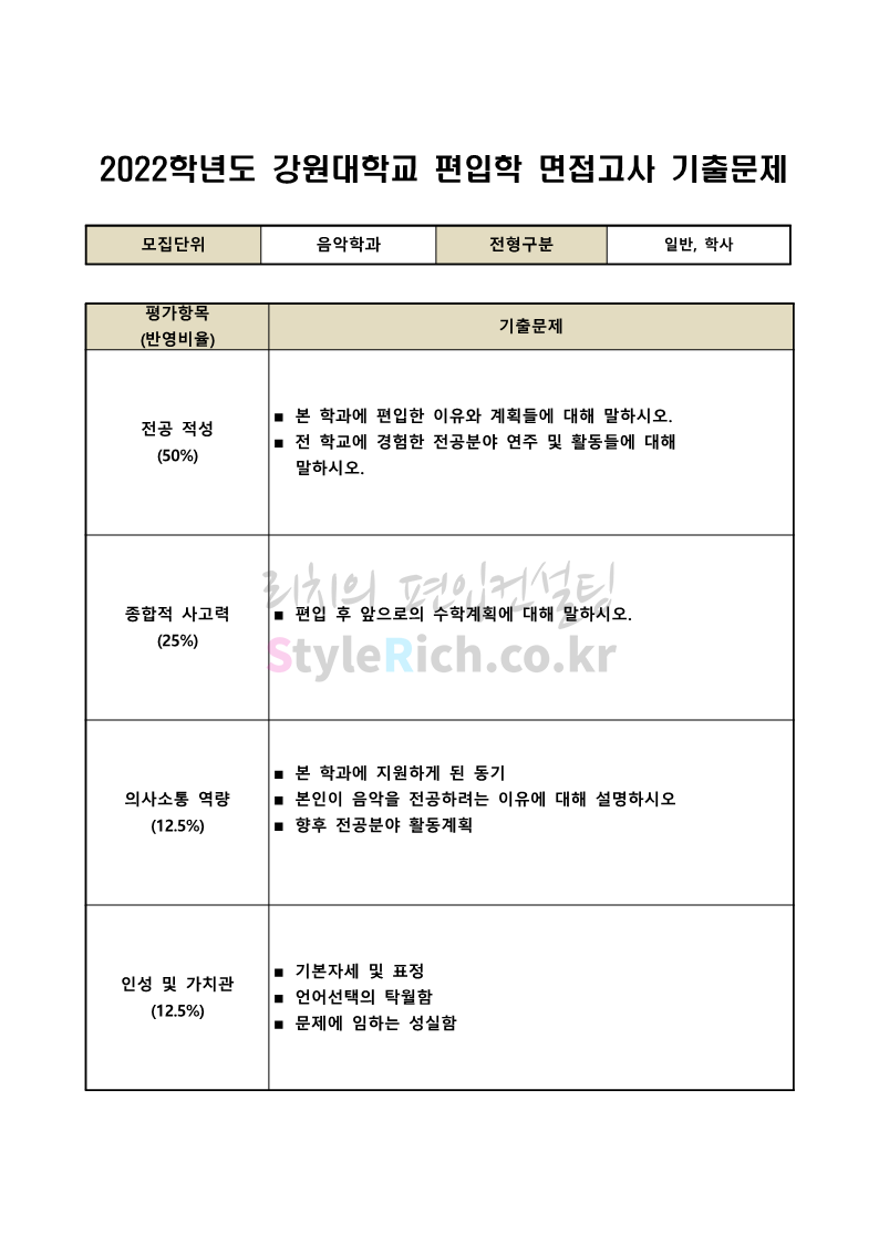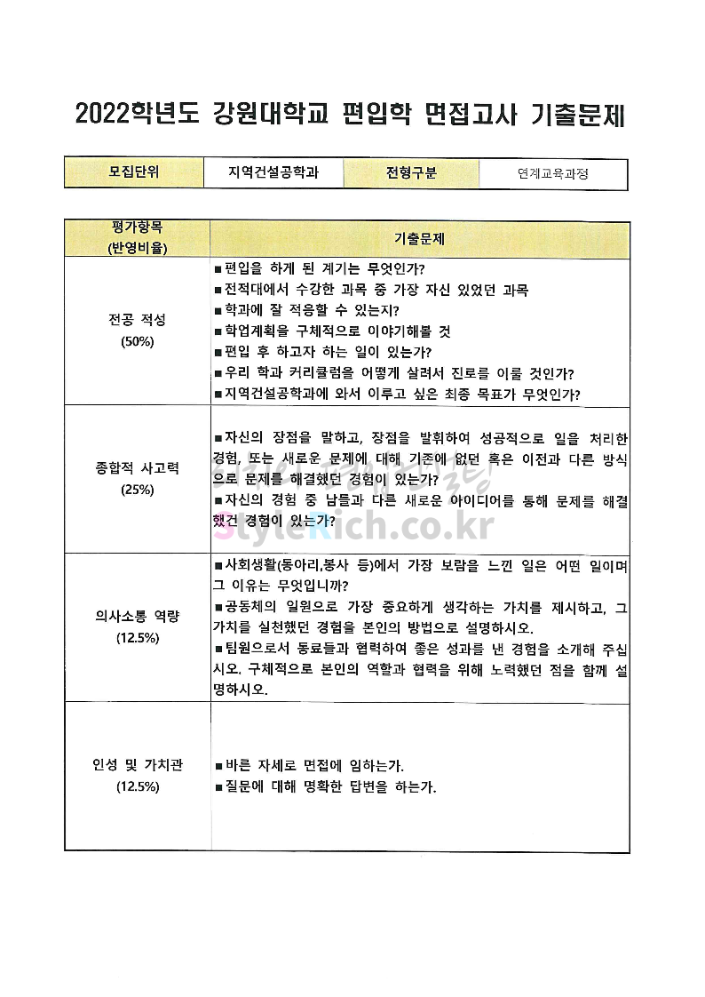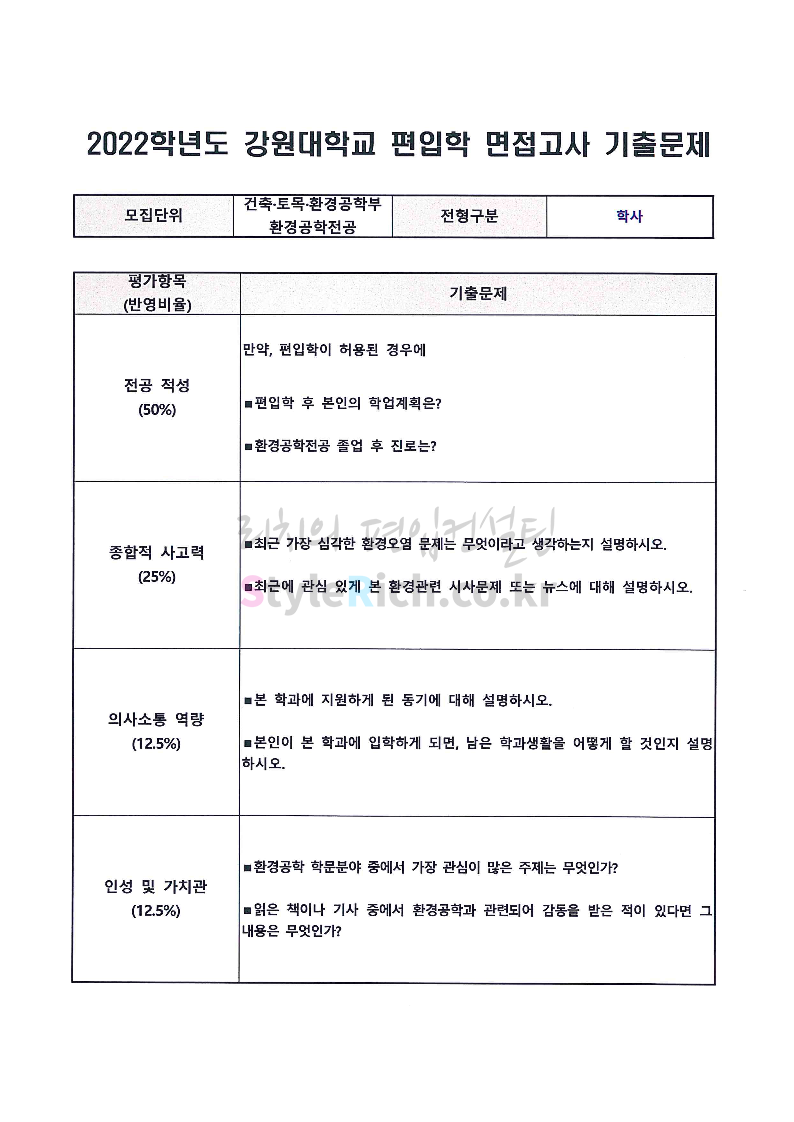 강원대 편입 2022학년도 면접 기출문제가 궁금하다면?
