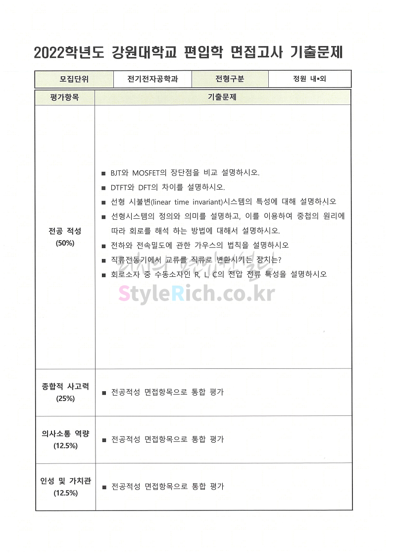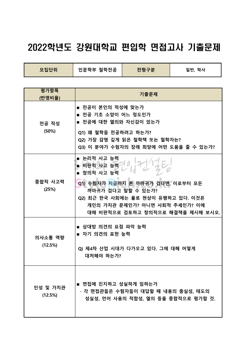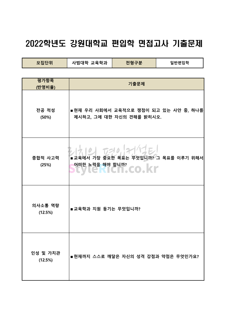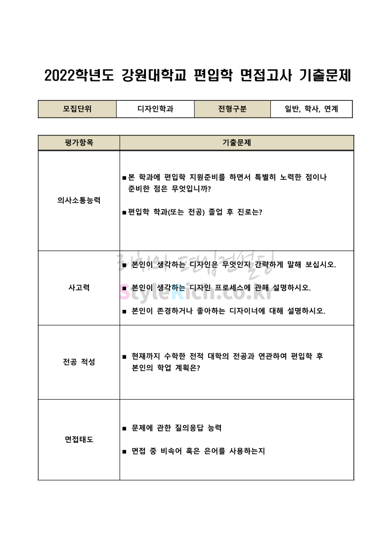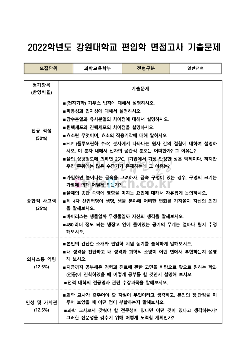 2022학년도 강원대 편입 면접 기출문제를 살펴보겠습니다.
