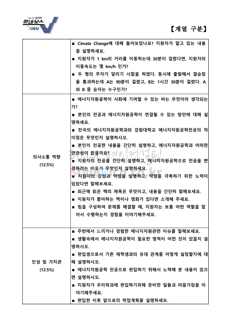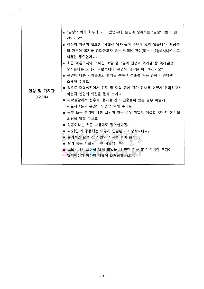 * 대부분은 강원도 춘천캠퍼스 면접 기출문제이며, 보건과학대학은 삼척,도계캠퍼스 면접 기출문제입니다.