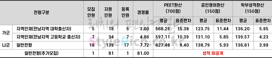 목포대 약대편입 2022학년도 합격점수(평균점수, 커트라인)을 알아보자! 2022.09.27 22:55 약대편입 합격점수 & 추가합격/2022학년도 약대 합격점수 & 추가합격 2022학년도 목포대 약대편입 합격점수를 살펴보겠습니다. * 최종 등록자 기준으로 모집인원/등록인원이 1명인 전형은 개인정보보호를 위해 성적을 공개하지 않음 2022학년도 목포대 약대편입 합격점수 현황 2022학년도 목포대 약대편입 합격점수 <출처: 목포대> 공유하기 게시글 관리 리치의 편입컨설팅 저작자표시 비영리 변경금지 (새창열림) '약대편입 합격점수 & 추가합격 > 2022학년도 약대 합격점수 & 추가합격' 카테고리의 다른 글 인제대 약대편입 2022학년도 합격점수(평균점수, 커트라인)을 알아보자! (0) 2022.09.28 목포대 약대편입 2022학년도 추가합격 예비순위(예비번호)를 알아보자! (0) 2022.09.27 순천대 약대편입 2022학년도 추가합격 예비순위(예비번호)를 알아보자! (0) 2022.09.26 순천대 약대편입 2022학년도 합격점수(평균점수, 커트라인)을 알아보자! (0) 2022.09.26 대구가톨릭대 약대편입 2022학년도 추가합격 예비순위(예비번호)를 알아보자! (0) 2022.09.25 댓글 공유하기 다른 글 댓글 이 글 공유하기 구독하기 구독하기 카카오톡 카카오톡 라인 라인 트위터 트위터 Facebook Facebook 카카오스토리 카카오스토리 밴드 밴드 네이버 블로그 네이버 블로그 Pocket Pocket Evernote Evernote 다른 글 인제대 약대편입 2022학년도 합격점수(평균점수, 커트라인)을 알아보자! 인제대 약대편입 2022학년도 합격점수(평균점수, 커트라인)을 알아보자! 2022.09.28 목포대 약대편입 2022학년도 추가합격 예비순위(예비번호)를 알아보자! 목포대 약대편입 2022학년도 추가합격 예비순위(예비번호)를 알아보자! 2022.09.27 순천대 약대편입 2022학년도 추가합격 예비순위(예비번호)를 알아보자! 순천대 약대편입 2022학년도 추가합격 예비순위(예비번호)를 알아보자! 2022.09.26 순천대 약대편입 2022학년도 합격점수(평균점수, 커트라인)을 알아보자! 순천대 약대편입 2022학년도 합격점수(평균점수, 커트라인)을 알아보자! 2022.09.26 다른 글 더 둘러보기