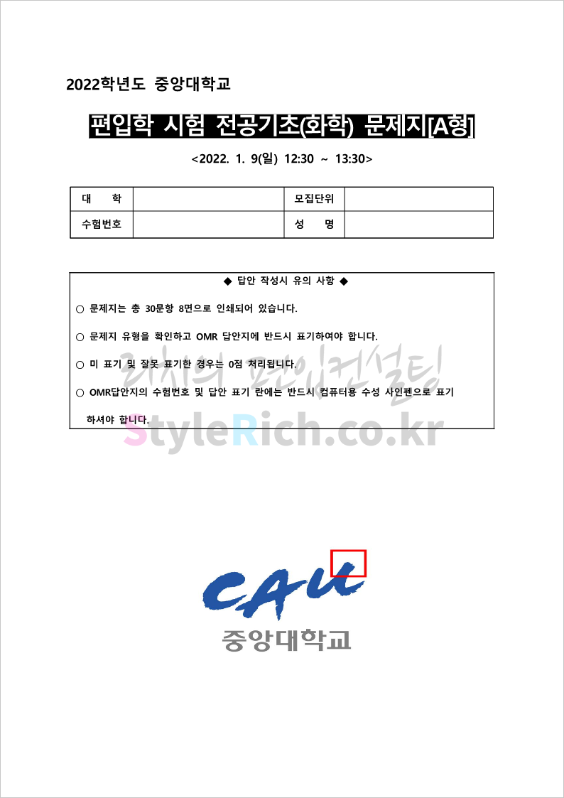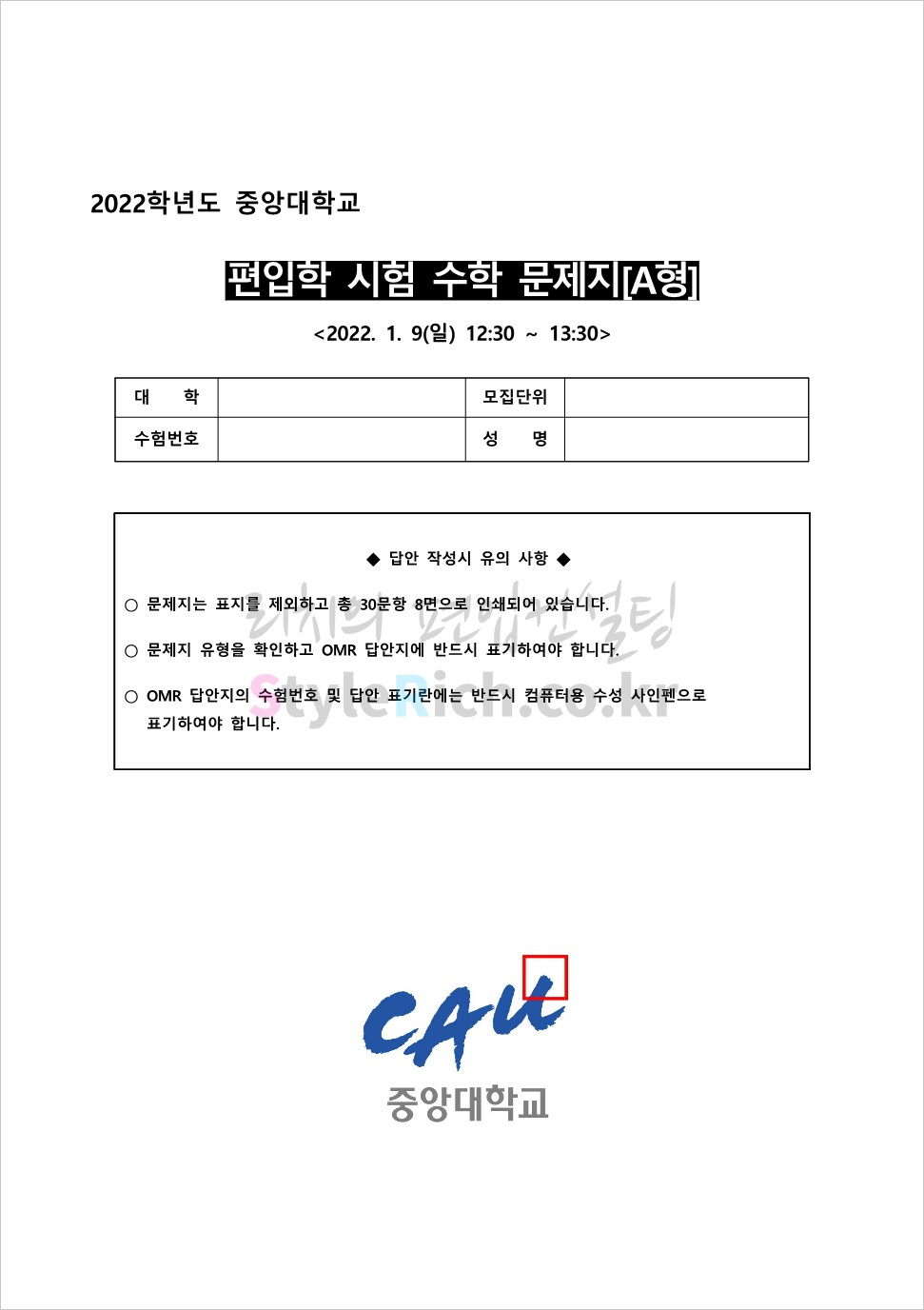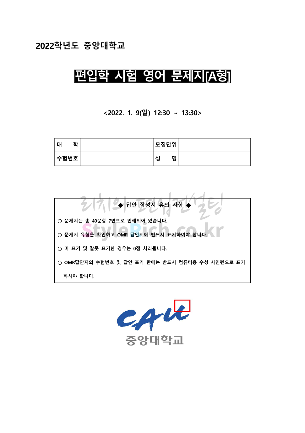 중앙대 편입 2022학년도 기출문제가 궁금하다면?