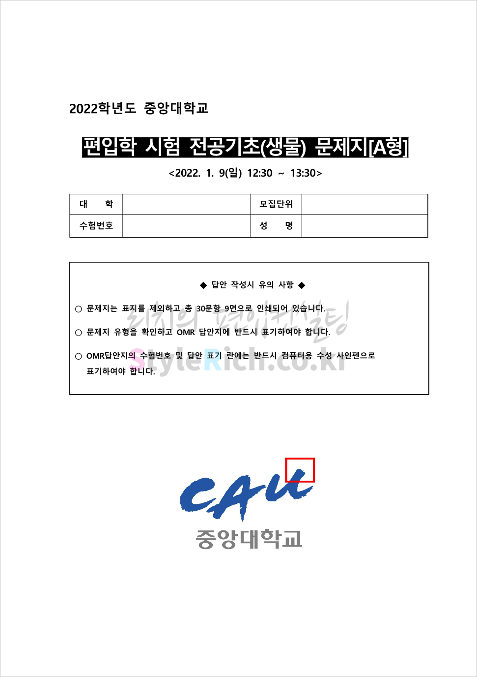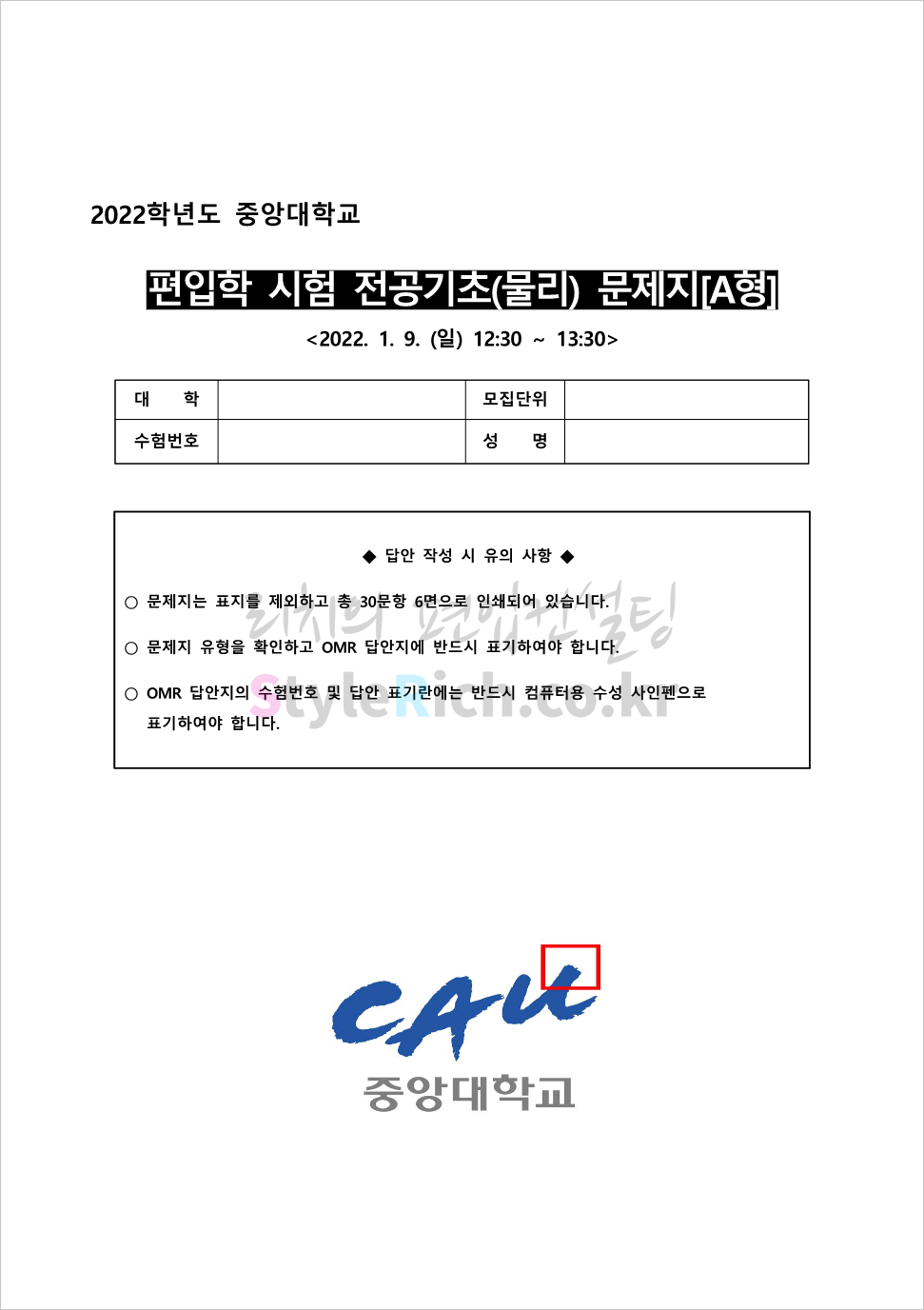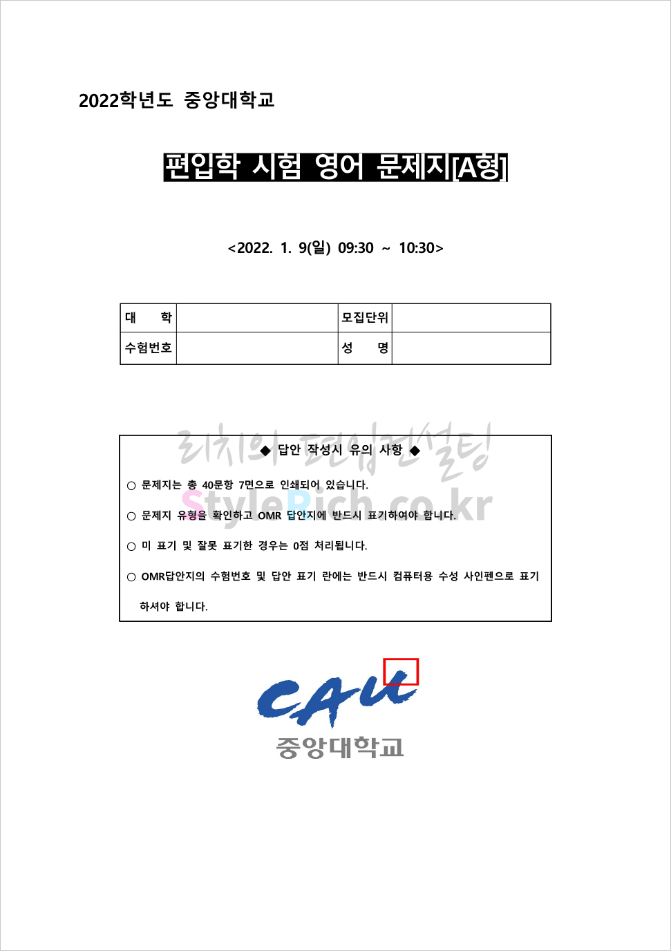 중앙대 편입 2022학년도 기출문제가 궁금하다면?