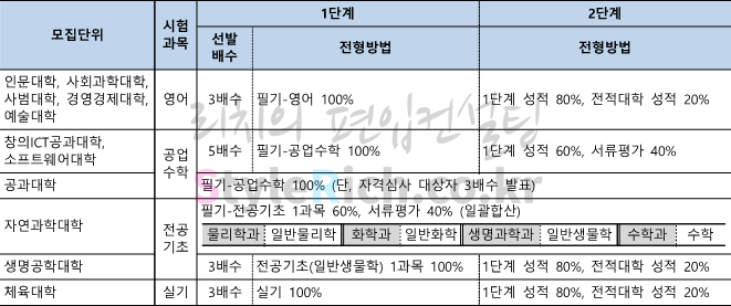 * 2022학년도 중앙대 편입은 우선선발과 일반선발로 나뉘며, 우선선발은 필기고사를 실시하지 않습니다. 우선선발 모집인원은 모집단위 별 모집인원 중 최대 50%(단, 경영학전공) 최대 60%, 소수점이하 버림)까지 선발할 수 있으며, 일반선발은 우선선발 합격자를 제외한 인원 기준으로 선발합니다.