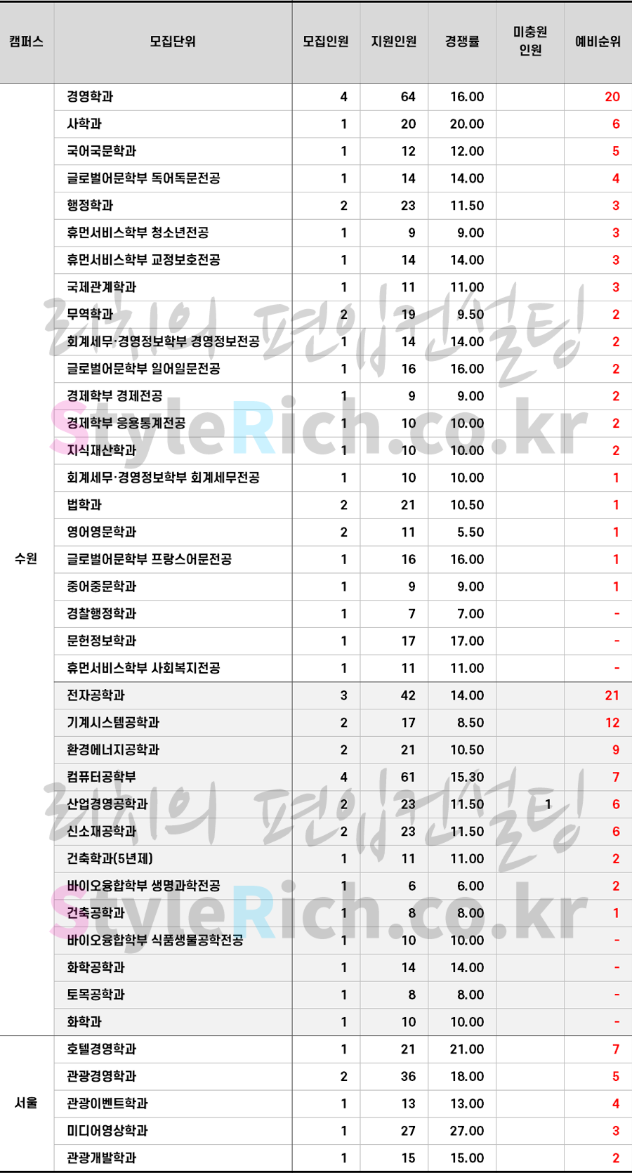 2022학년도 경기대 학사편입 추가합격 예비순위(예비번호)
