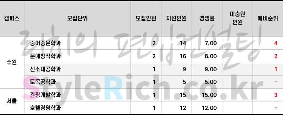 2022학년도 경기대 재외국민편입 추가합격 현황
