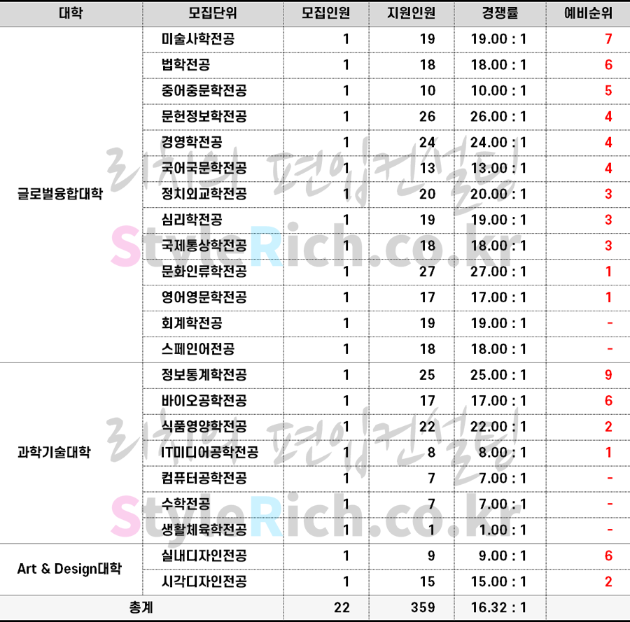 2022학년도 덕성여대 농어촌학생편입 추가합격 현황