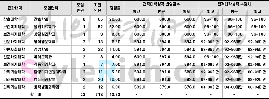 * 중국어학과, 일본어학과는 가산점의 최저와 최고치 점수를 고려하여 추정