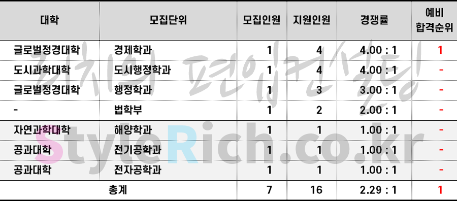 모집요강,경쟁률,합격점수,추가합격 등 편입정보 제공
