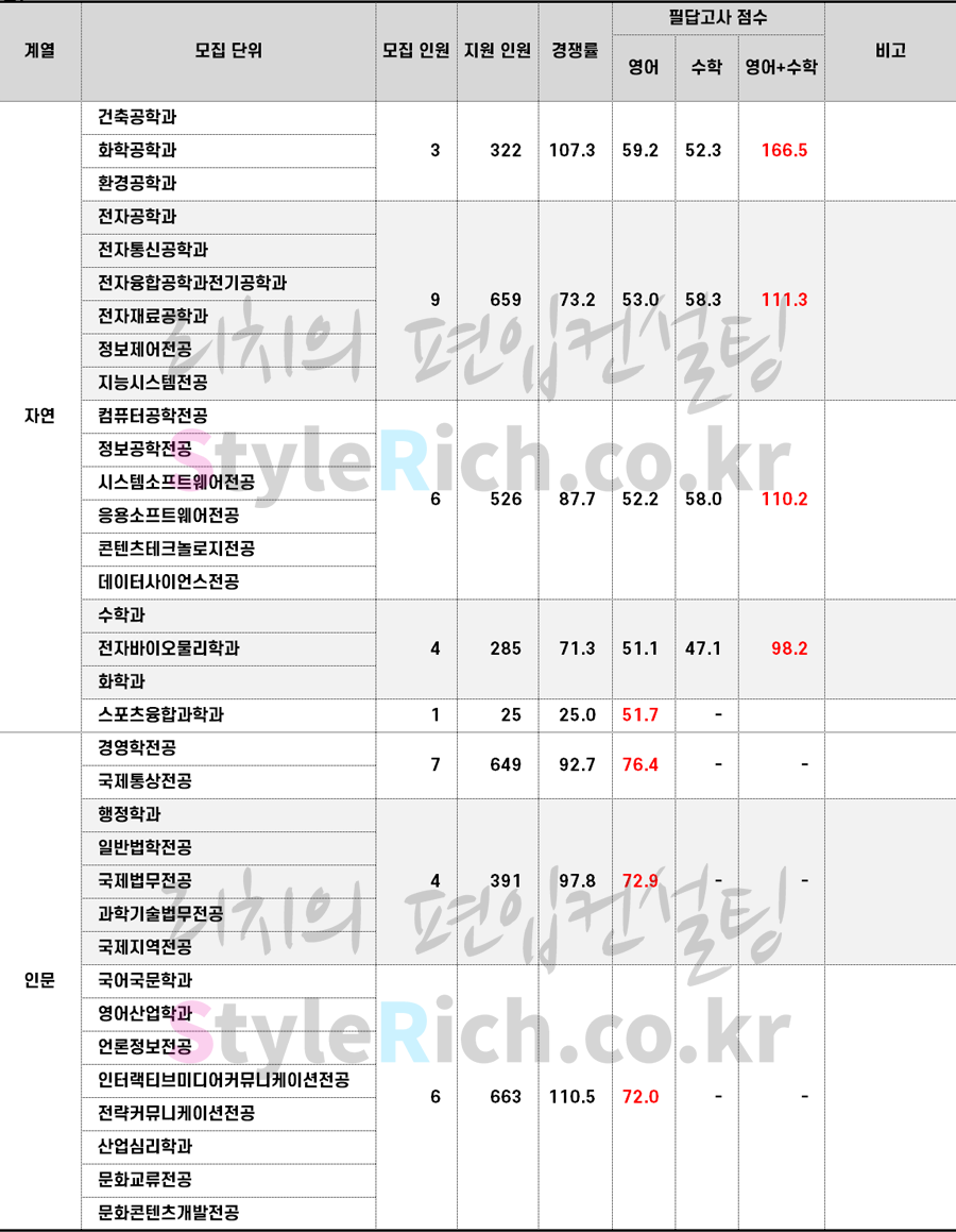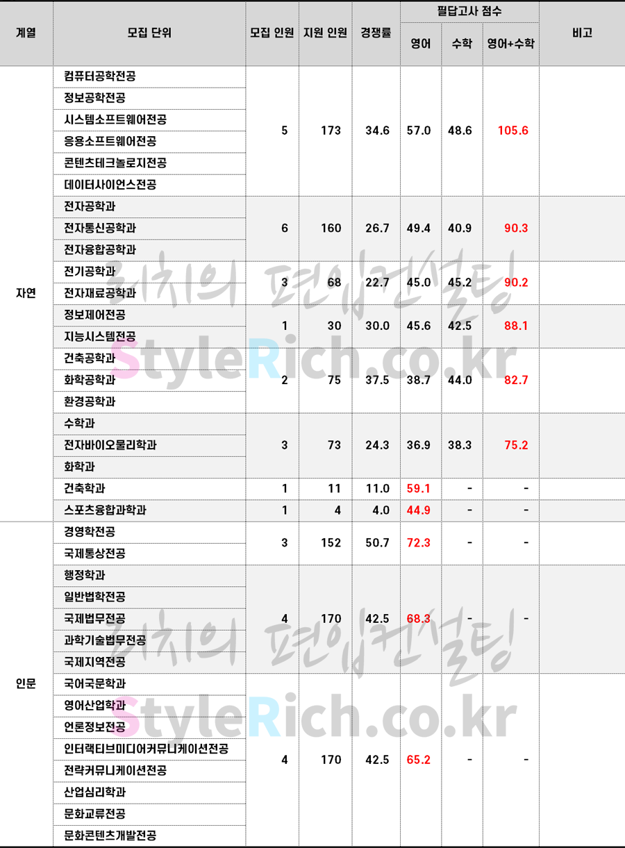 * 모집단위는 필답고사가 높은 순으로 정렬