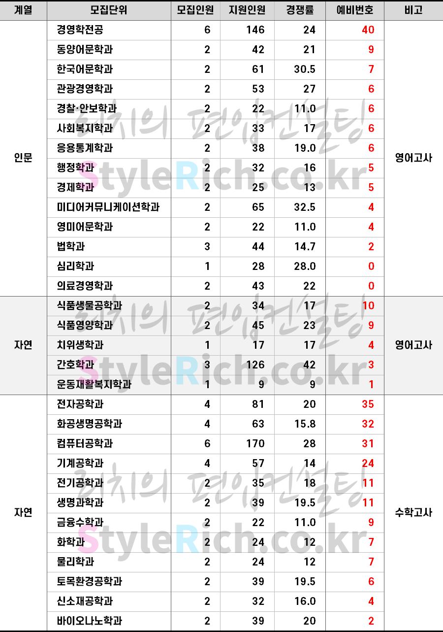 가천대 편입 2022학년도 추가합격 예비순위(예비번호)를 알아보자! 2022.11.05 21:39 편입 합격점수 & 추가합격/2022학년도 합격점수 & 추가합격 2022학년도 가천대 편입 추가합격 예비순위(예비번호)를 살펴보겠습니다. 인문(영어), 자연(영어), 자연(수학)으로 분류 후 추가합격이 높은 순으로 정렬 2022학년도 가천대 일반편입 추가합격 현황 2022학년도 가천대 일반편입 추가합격 예비순위(예비번호) 2022학년도 가천대 학사편입 추가합격 현황 2022학년도 가천대 학사편입 추가합격 예비순위(예비번호) <출처: 가천대> 공유하기 게시글 관리 리치의 편입컨설팅 저작자표시 비영리 변경금지 (새창열림) '편입 합격점수 & 추가합격 > 2022학년도 합격점수 & 추가합격' 카테고리의 다른 글 서울과학기술대 편입 2022학년도 추가합격 예비순위(예비번호)를 알아보자! (0) 2022.11.07 서울과학기술대 편입 2022학년도 합격점수(커트라인)을 알아보자! (0) 2022.11.07 가천대 편입 2022학년도 합격점수(평균점수, 커트라인)을 알아보자! (0) 2022.11.05 광운대 편입 2022학년도 추가합격 예비순위(예비번호)를 알아보자! (0) 2022.10.30 광운대 편입 2022학년도 합격점수(평균점수, 커트라인)을 알아보자! (0) 2022.10.23 댓글 공유하기 다른 글 댓글 이 글 공유하기 구독하기 구독하기 카카오톡 카카오톡 라인 라인 트위터 트위터 Facebook Facebook 카카오스토리 카카오스토리 밴드 밴드 네이버 블로그 네이버 블로그 Pocket Pocket Evernote Evernote 다른 글 서울과학기술대 편입 2022학년도 추가합격 예비순위(예비번호)를 알아보자! 서울과학기술대 편입 2022학년도 추가합격 예비순위(예비번호)를 알아보자! 2022.11.07 서울과학기술대 편입 2022학년도 합격점수(커트라인)을 알아보자! 서울과학기술대 편입 2022학년도 합격점수(커트라인)을 알아보자! 2022.11.07 가천대 편입 2022학년도 합격점수(평균점수, 커트라인)을 알아보자! 가천대 편입 2022학년도 합격점수(평균점수, 커트라인)을 알아보자! 2022.11.05 광운대 편입 2022학년도 추가합격 예비순위(예비번호)를 알아보자! 광운대 편입 2022학년도 추가합격 예비순위(예비번호)를 알아보자! 2022.10.30 다른 글 더 둘러보기